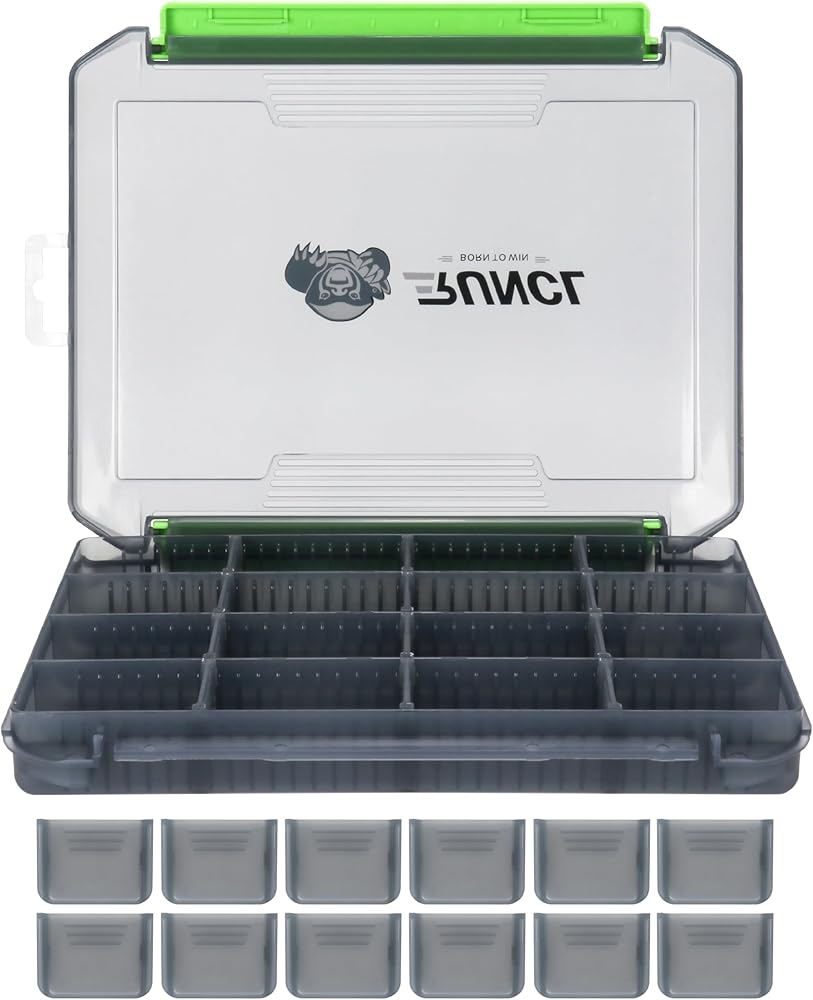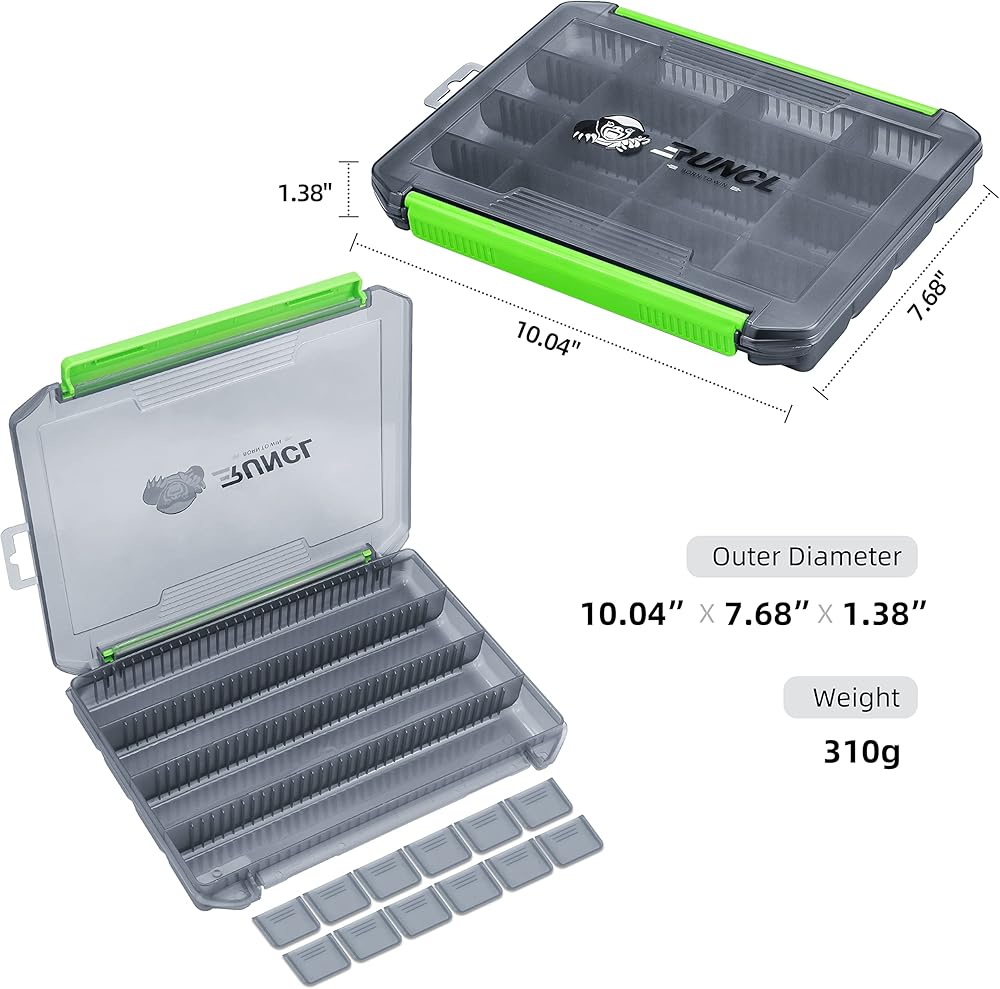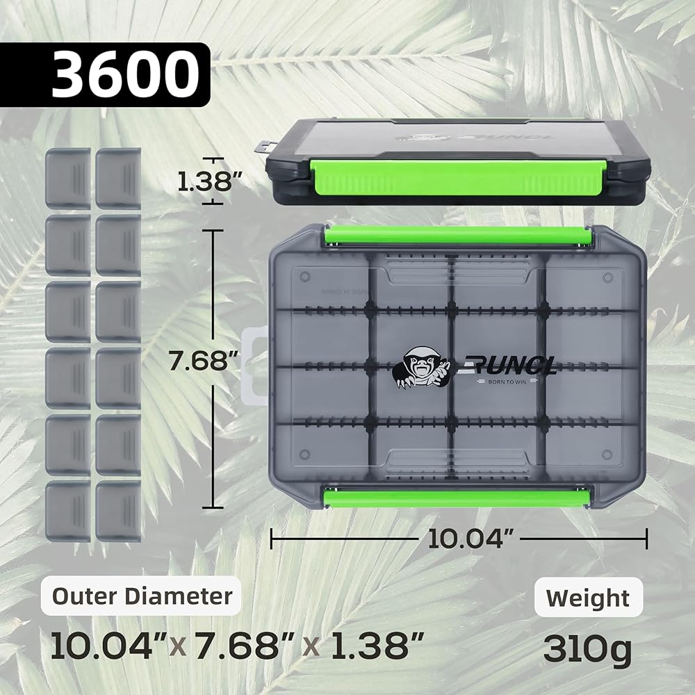 Small Tackle Box: This stury box has 3500/3600 two size(CHECK SIZE INFORMATION in PICTURE), vertical dividers can remove and horizontal dividers can't. Using all the 12 included dividers allows you to have 16 (4x4) compartments