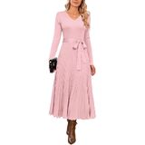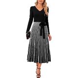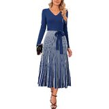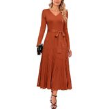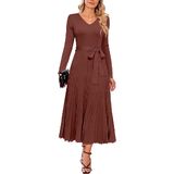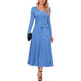 Stylish Design: Womens sweater dresses feature with classic solid colors, pleated A line, sexy v neck, tie waist, long sleeve, quality knit fabric are stretchy and flexible, suitable for all body types.