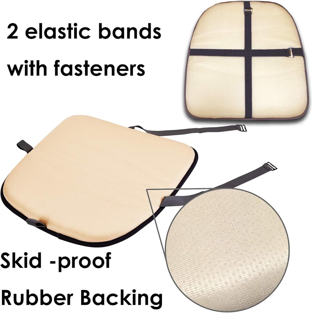 √Tie-less Skid -proof Rubber Backing - The frustration will be caused by chair pads when they don't stay in place. Even chair cushion with ties still move around. We have designed the best way to keep our chair pads and back seat cushion stay well on your chairs with non-slip rubber backing. And the elastic bands with fasteners can be fixed to the back of your chair protect chair padding from moving.