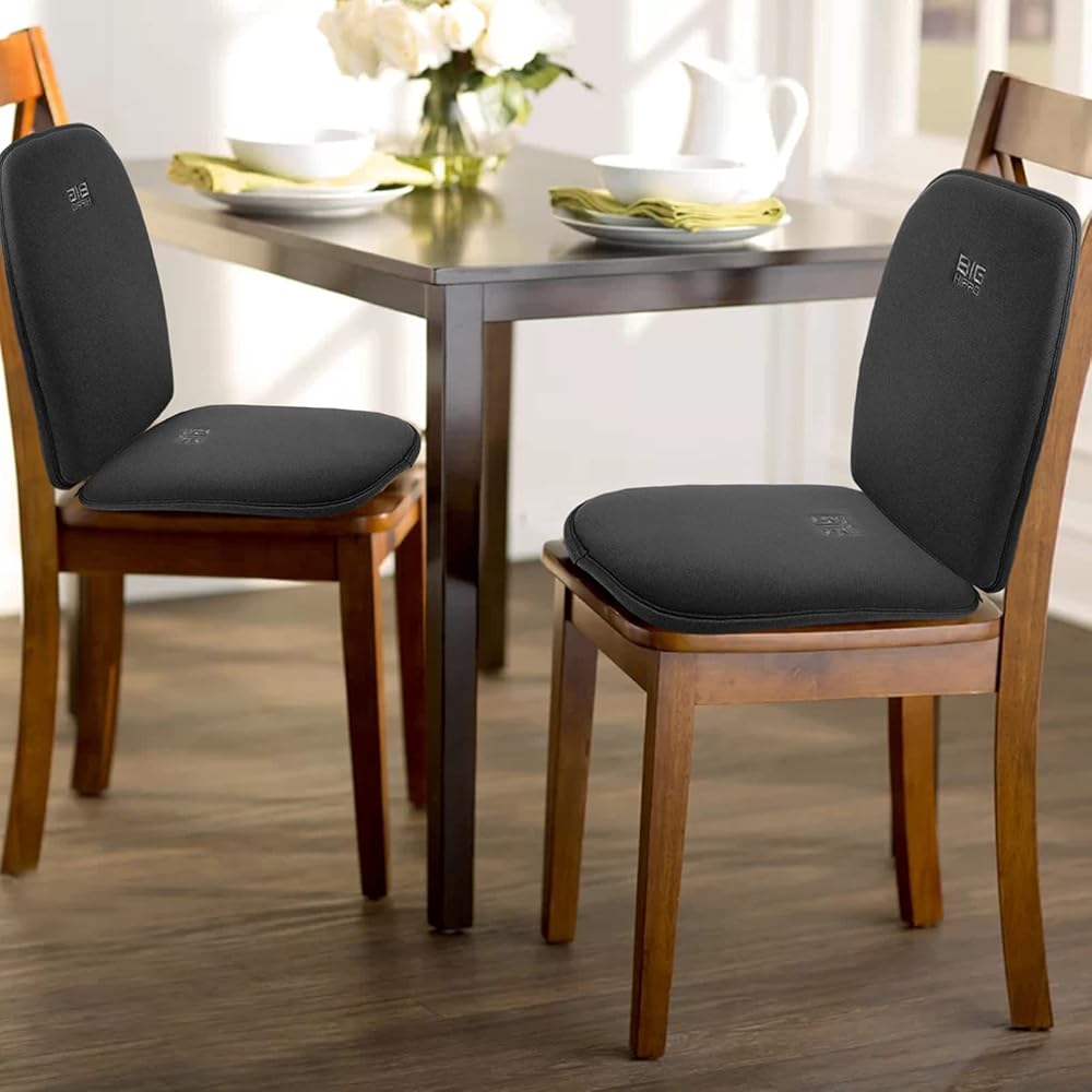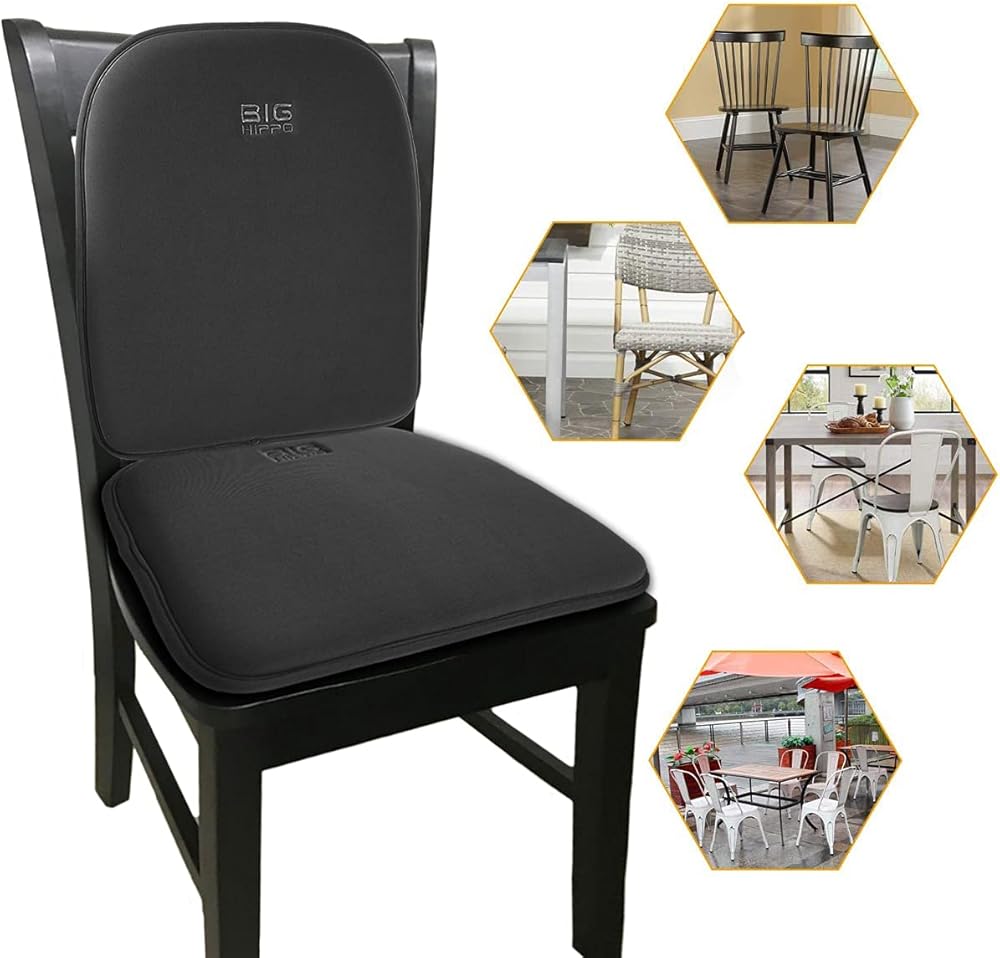 Big Hippo Dining Chair Cushions & Kitchen Chair Cushions Memory Foam Seat Pad with Lumbar Support Pillow - Thickened Non-Slip Rubber Back, Elastic Bands for Home/Office/Outdoor Seats (Black-Set of 1)
