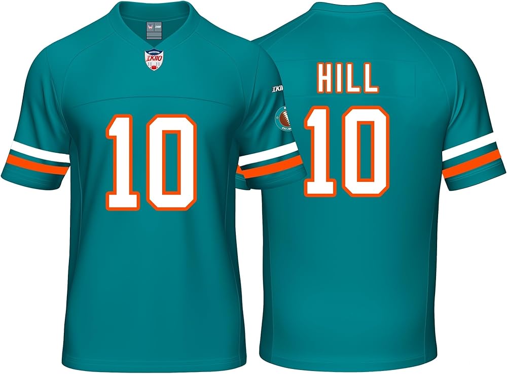 • Our football jerseys are slim-fitting, please refer to the size chart.If you're on the borderline between two sizes, order the smaller size for a tighter fit or the larger size for a looser fit. If your measurements for chest and waist correspond to two different suggested sizes, order the size indicated by your chest measurement.