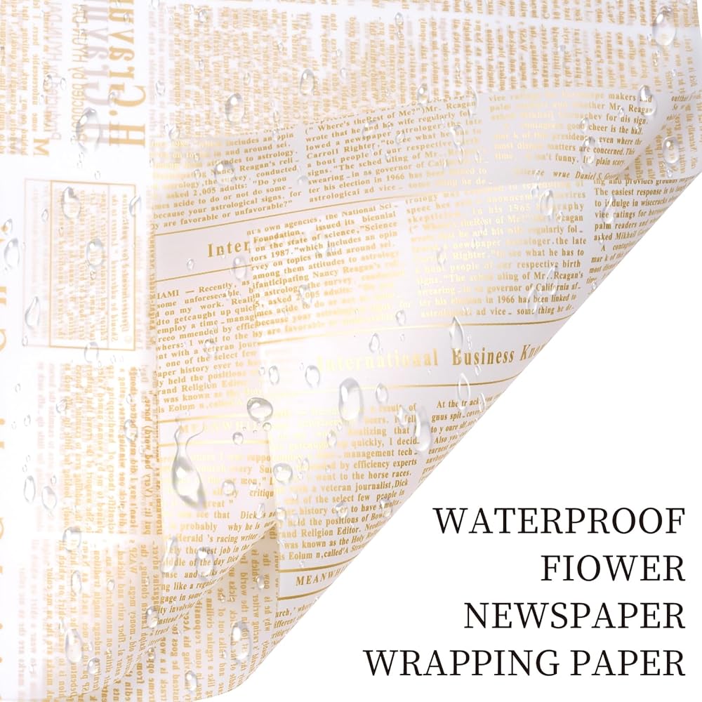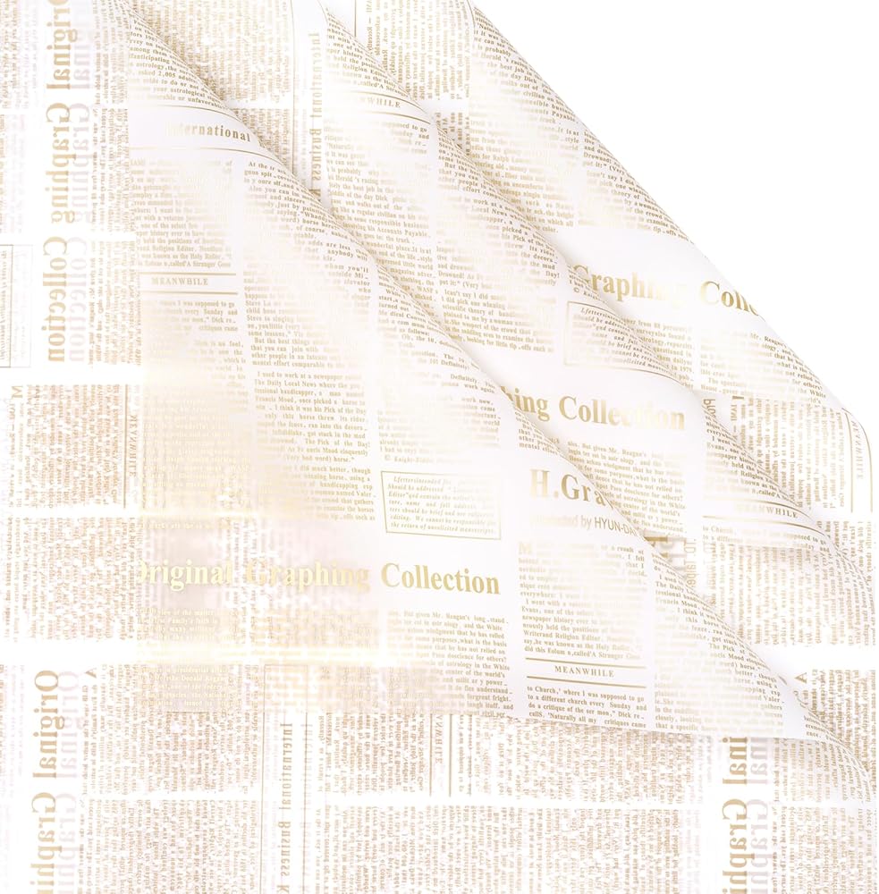 Stylish Design: Featuring a unique brown font newspaper print design, this wrapping paper adds a vintage and sophisticated touch to any bouquet, making your floral arrangements stand out.