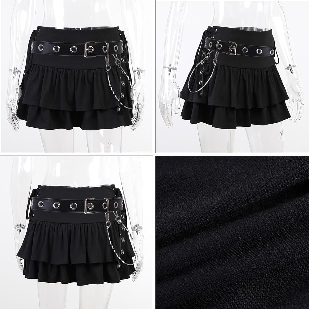 Design: Solid Color, Ruffle Bottom, Tie Closed, Gothic Style, A Line Mini Skirts.