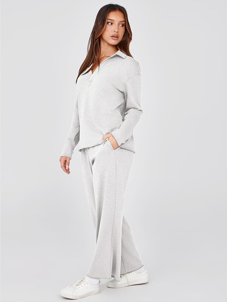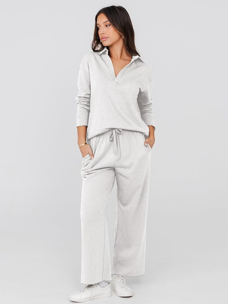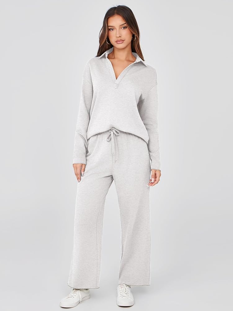 Stylish Design - Designed with v neck, wide leg, high waist drawstring, and wide leg sweatpants, this cute cozy sweatsuit women 2 piece outfit is cut for a relaxed, elegant fit. This tracksuit for women effortlessly combines comfort with fashion