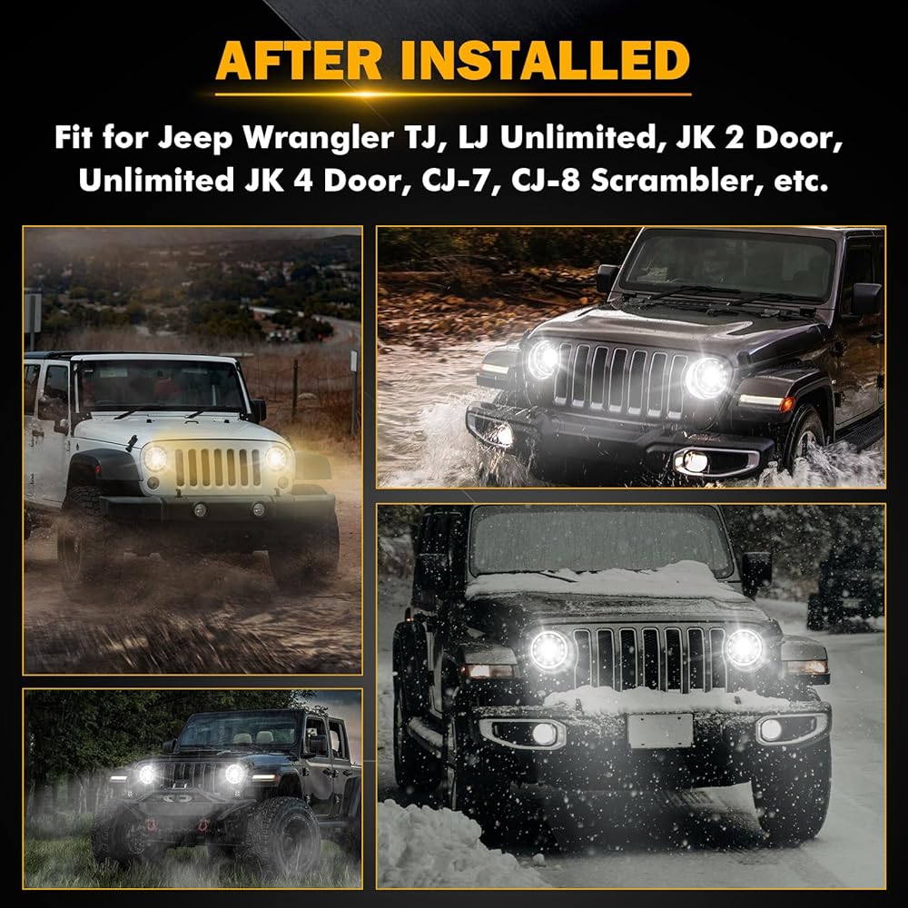【FITMENT】H6024 LED headlights are compatible with most vehicles with 7 inch led headlights, replacement for #6014, 6015, 6016, H6024 and Par 56 headlamps. Fit for Jeep Wrangler 1997-2017, TJ 2 Door 1997-2006, LJ unlimited (4 Door) 2004-2006, JK 2 Door 2 2007-2017, Unlimited JK 4 Door 2007-2017, CJ-8 Scrambler 1981-1985, CJ-7 1976-1986. For detailed compatible models, please refer to our description below.
