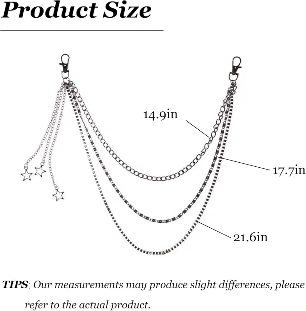 【Ideal for Rock or Hip-Hop Enthusiasts】: If you're a fan of rock or hip-hop music, these waist chains are a must-have accessory. They're perfect for adding some extra edge to your look and will help you stand out from the crowd.