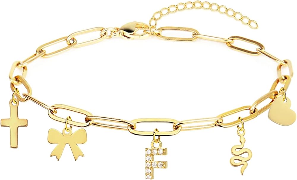 Harry and Henry Gold Charm Bracelet for Women Gold A-Z Initial Bracelet Charms Cross Snake Bow Charm Bracelets Paperclip Link Chain Bracelets for Women Trendy 2025