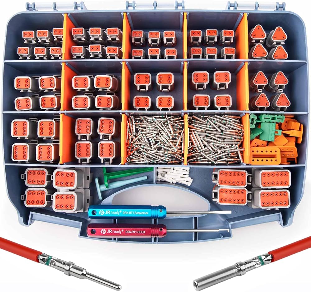 [ JRready Value Pack ] Deutsch crimp tool NEW-DT1 with 2 Pairs DTM 2/3/4/6 pin connectors, 30 pcs Deutsch Pins 0460-010-20141, 30 pcs deutsch sockets 0462-005-20141, Seal Plugs(20 pcs), 1PC Deutsch Removal Tool DRK-RT1B and 1PC Extraction Tool 0411-240-2005.