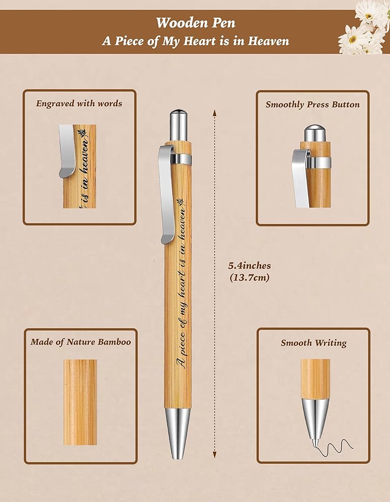 In loving memory of Husband journal set combines a crafted wooden pen with a deeply engraved message, “A Piece of Me is in Heaven”. It's a beautiful Husband remembrance gift - a place where you can pour out your feelings, share cherished memories, and write letters to your Husband in heaven