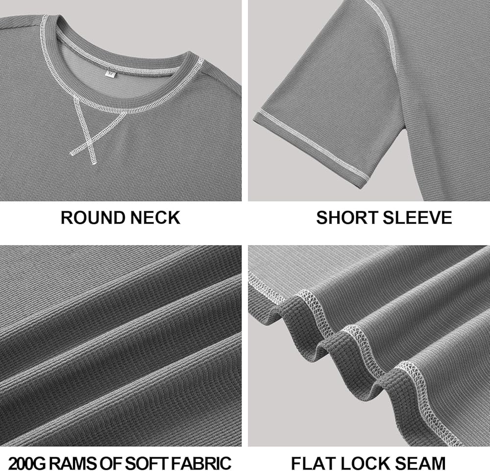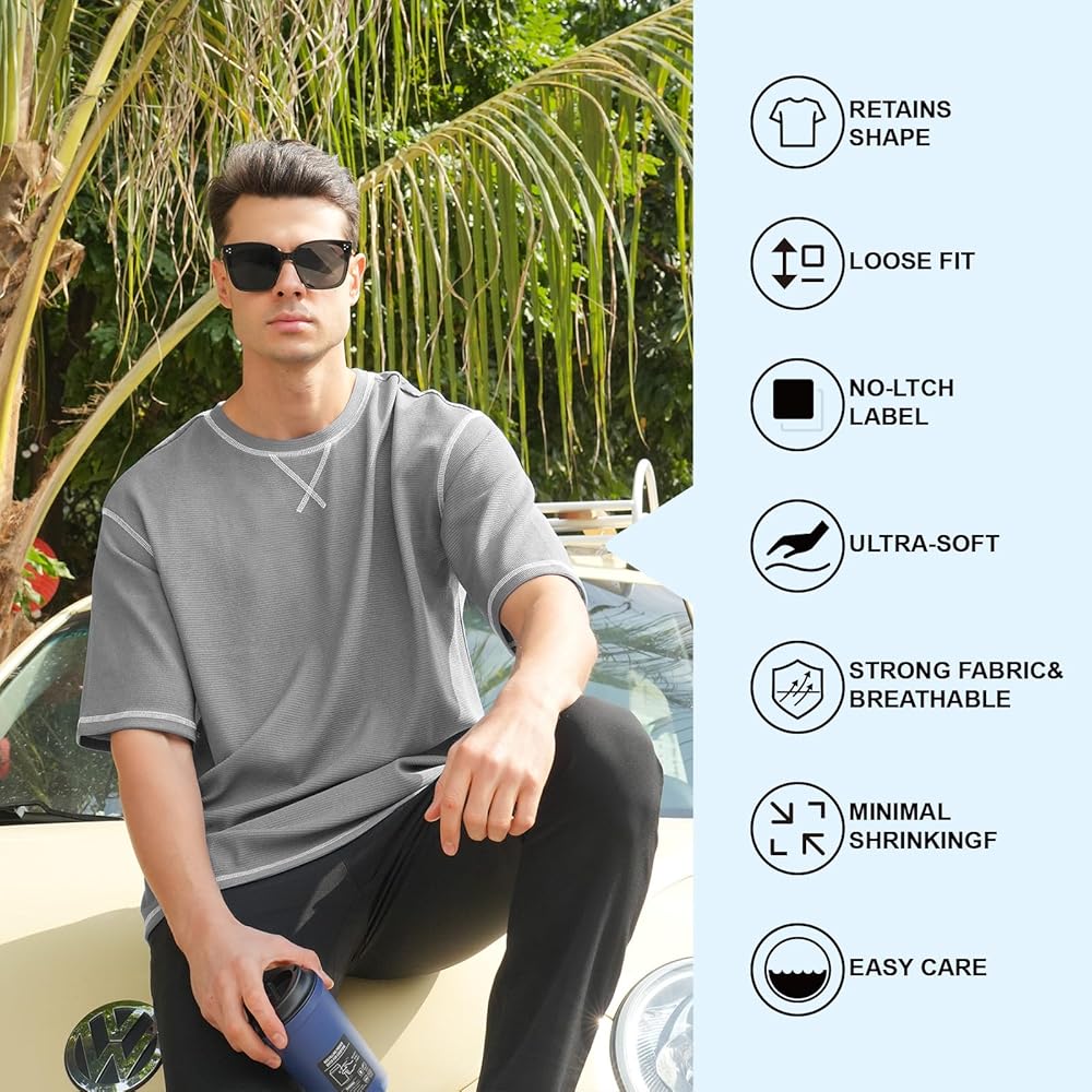 【Fashion Solid Crew Neck Tee】:Stylish solid color t-shirt is made of solid color waffle fabric with white high-density stitching outlining the t-shirt, giving this t-shirt a three-dimensional and stylish look!The drop-shoulder design keeps your upper body from feeling tight.Style and comfort at the same time. 100% polyester heavyweight fabric won't lose its shape, wash and dry to restore the original shape. This casual loose fit T-shirts is like your second layer of "skin! "Tee