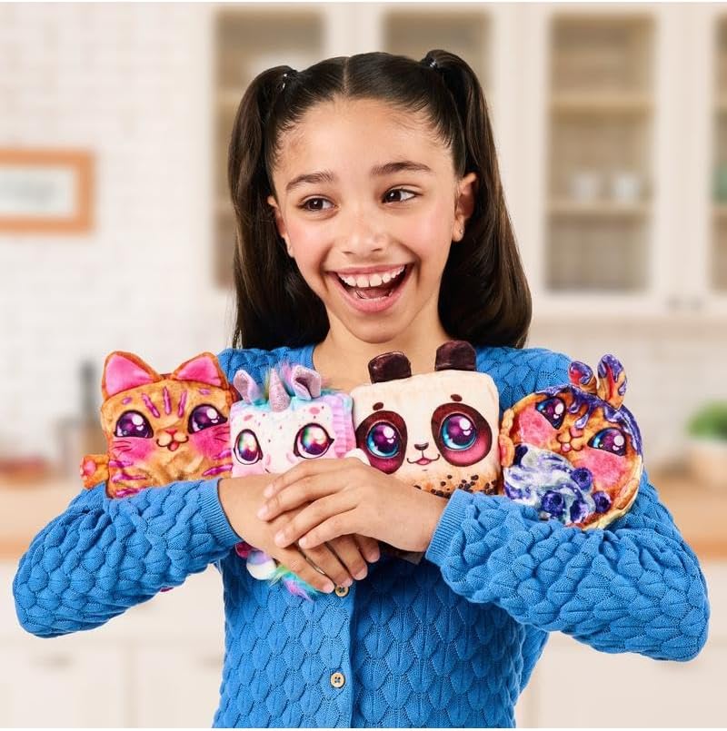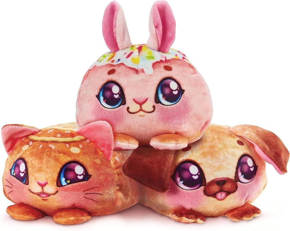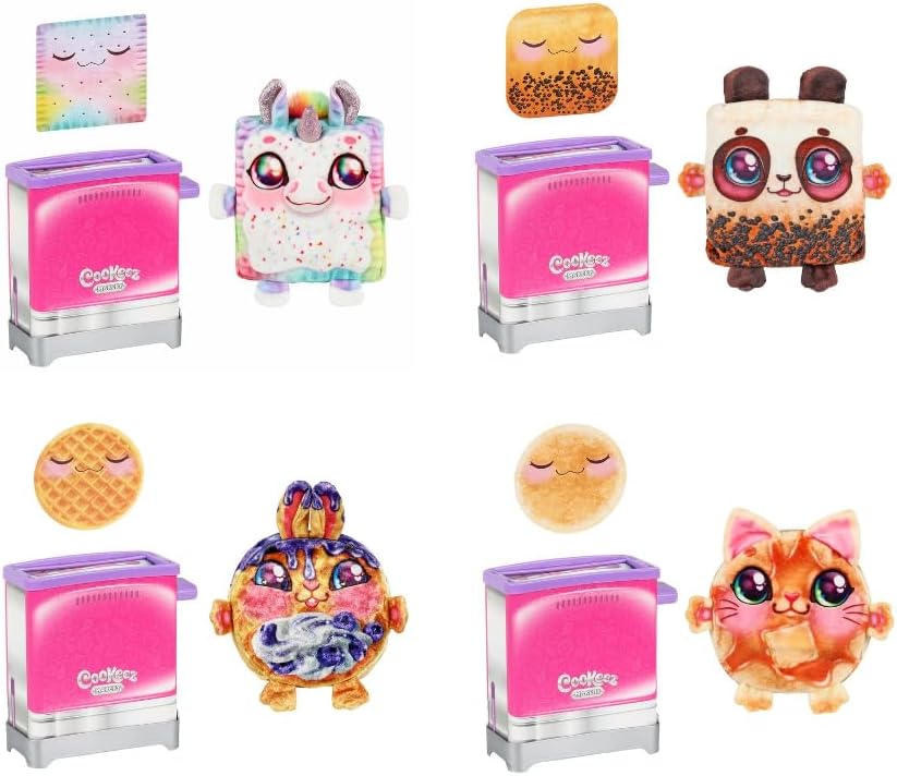Cookeez Makery will amaze you and your child when they bake a surprise plush best friend! As they open the oven door they will discover their own warm and scented interactive plush friend in the shape of a yummy smelling baked treat! The Cookeez Makery Cinnamon Treatz Oven comes with everything children need to mix and make a Surprise Bake! When they first open the oven door they will find a recipe box and a recipe card that tells them which friend they will bake. There's a chance of making a puppy, kitten or bunny! Let's get cooking! First they mix the ingredients to create a dough ball. Then using the dough mold and included tools they can add adorable features such as eyes, mouth, paws and ears. It's so easy! Then pop it in the oven and shut the door. In 90 seconds, kids will hear a "ding". It's time to open the oven and meet a new friend. Wow! A warm and deliciously cinnamon scented plush toy that's interactive to play with! Their new baked friend even makes lovable sounds when your child squeezes and loves it! With the Cookeez Makery Oven baking friends is easy! Which Cinnamon Treatz will they make? There are 3 to create - Cinnamon Pooch, Fondant Feline and Strawberry Swirl! Children can repeat the process again and again to wow family and friends! You will "Bake their day" when you give your child a Cookeez Makery - Cinnamon Treatz Oven! COOKEEZ MAKERY TOASTY TREATZ Which surprise plush friend will pop up out of the Cookeez Makery Toasty Treatz Toaster? Your child won't believe the sweet scented treat they're about to meet! First pop the bread into the toaster slot, then slide the toy toaster's handle down. Now slide the handle back up to reveal the cutest Toasty Treatz surprise plush pet! Toasty Treatz are soft, squishy and deliciously scented collectible plush pets in the shape of adorable breakfast treats! Which one will pop up? Will your child find Pnutty & Jam Tiger, Pan Kitty, Panda Au Chocolat, Unicorn Tart or Strudel Poodle? Maybe they will be lucky enough to find the the ultra-rare Bluebunny Waffle! There are 12 scented Toasty Treatz for kids to collect across Seasons 1 & 2. Toasty Treatz can't wait to pop up and spread their scented love and squishy hugs! What's Inside: 1 x Toy Toaster 1 x Card Treat 1 x Mystery Scented Plush 1 x Instruction Manual 1 x Increditoyz Mini Squishy Animal Friendz