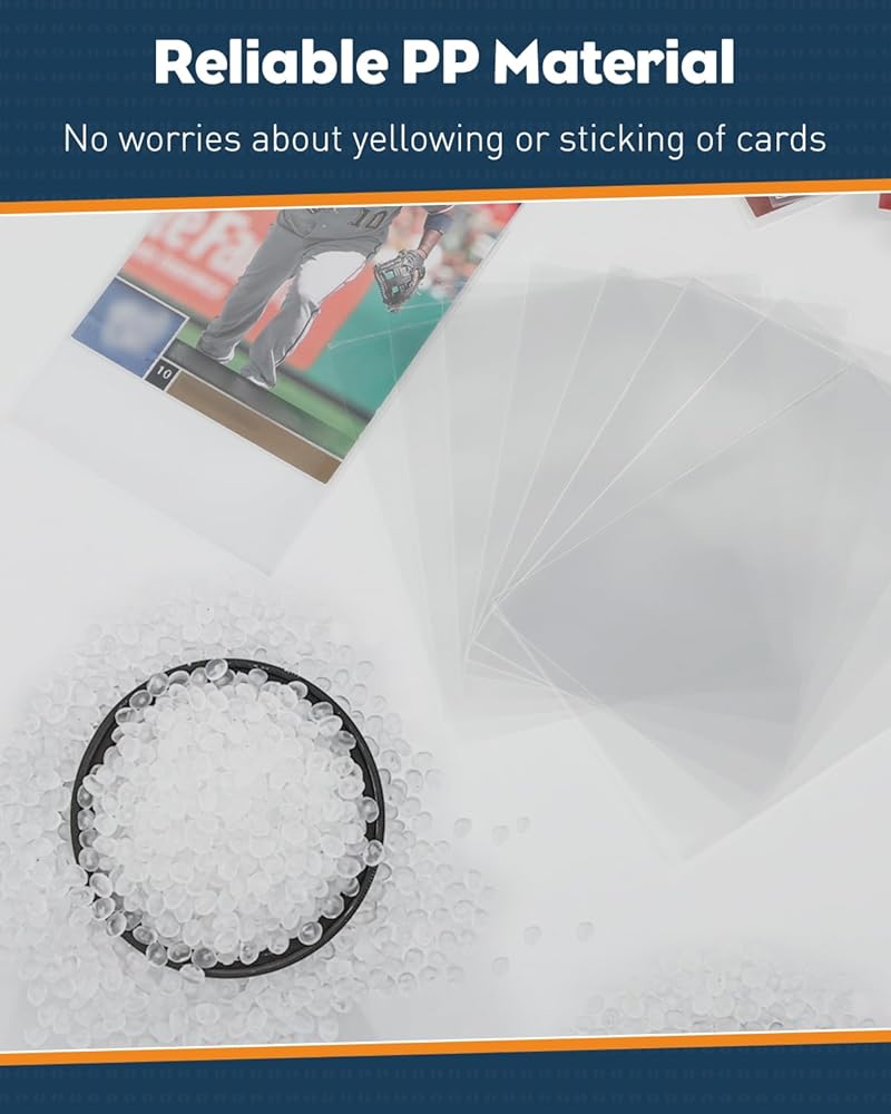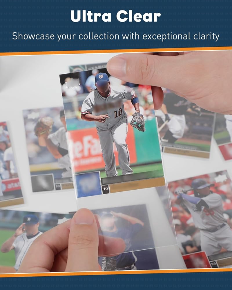 Ultra Clear: Featuring high transparency on both sides, the baseball card sleeves showcase your collection with exceptional clarity and visual effects. Conveniently display your cards to friends without taking them out, preventing accidental damages