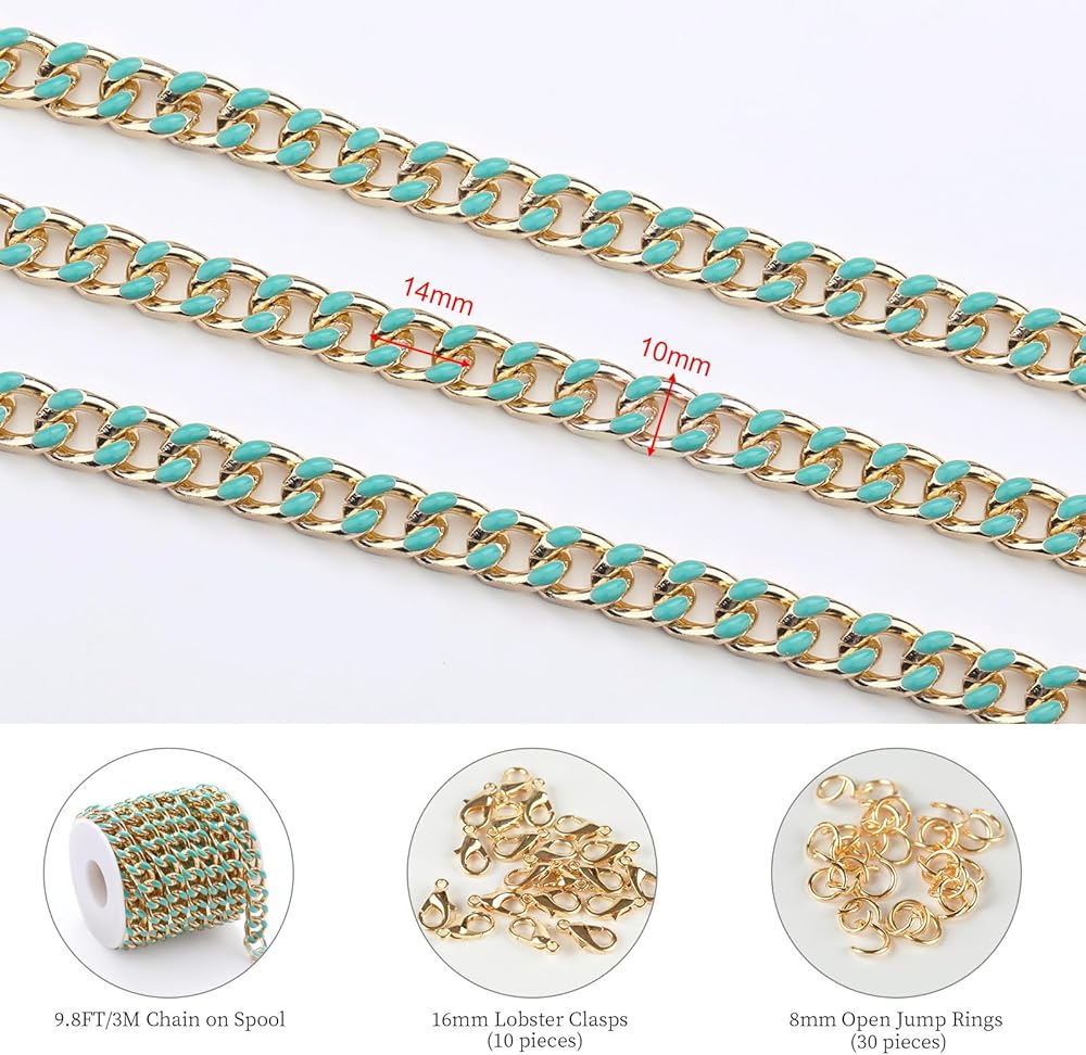 You will get--The package is included 1 roll about 9.8 feet/3 meters necklace chains for jewelry making, 10pcs lobster claps and 30pcs open jump rings. With matching jewelry clasps, allow you to make your personalized necklaces, bracelets, anklets and other jewelry crafts.