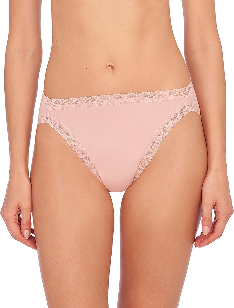Style # 152058 Natori Pima Cotton panty trimmed with lace ensure a stretchy, comfortable fit in these hipster briefs crafted for a smooth, line-free look beneath clothes. They will not shift or show through when wearing them.