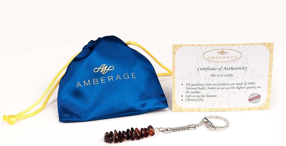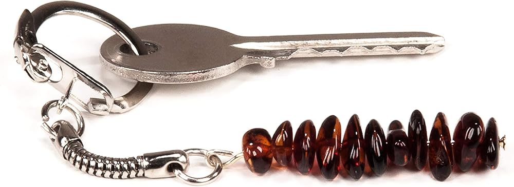 This Amber keychain is handmade from natural Baltic amber. Amber plates are strung on metal axis stripe; Condition: Brand New; Amber part length : 3,5cm; Keychain total length: 10,5-11cm; Weight : 5g; Colors : honey, dark cognac or rainbow; This item will come with a FREE Gift bag .ABOUT BALTIC AMBER JEWELRY Amber is a natural gemstone, which is formed naturally from ancient trees over many years' time. ***Note: The piece in the product image for this item is for illustration only. There is no two identical items and every single one is unique. The photo just represents exact setting style and type of amber used. Computer Monitor Settings of individuals can also affect the color of the photos.***