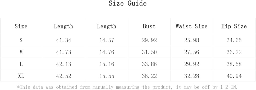 XL:Hip Size:40.9IN,Length:42.5IN,Waist Size:32.3IN,Bust:36.2IN,Length:15.6IN