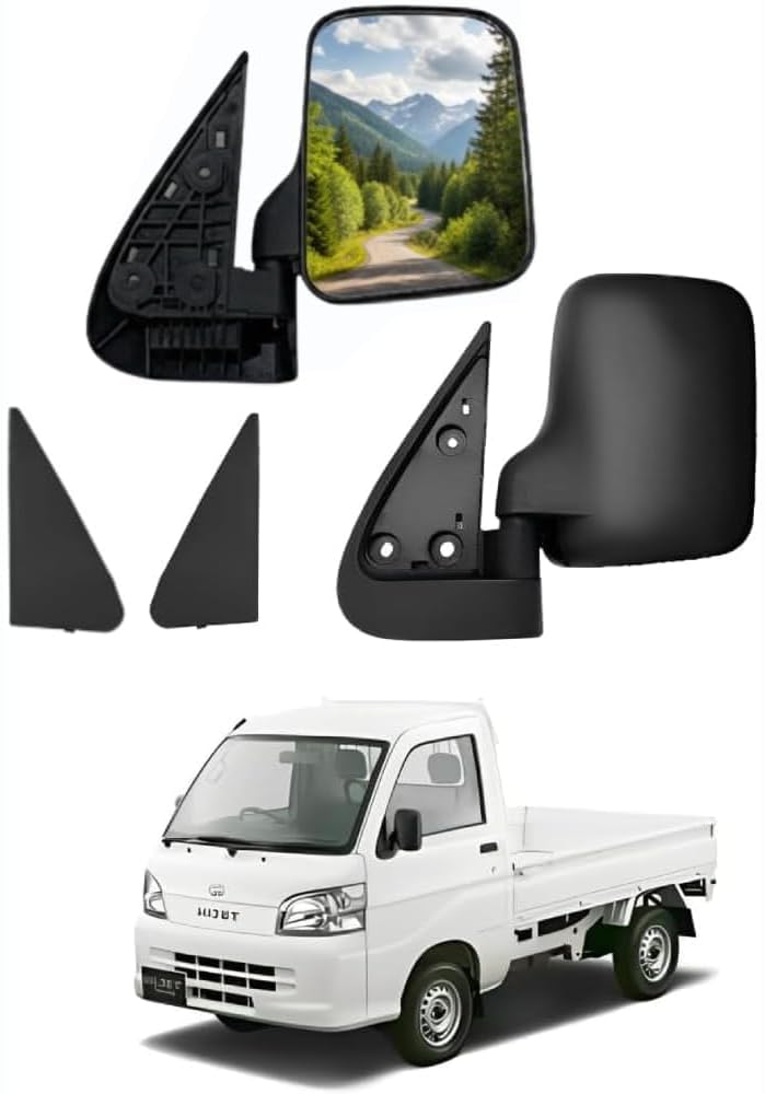 Japard Replacement Side Mirror Daihatsu Hijet Folding Left & Right - S100P, S200P, S200C, S210P, S210C, Compatible with Kei Truck Manual Only, Atrai, Pickup Panel Van, 1995+, Foldable (Black)