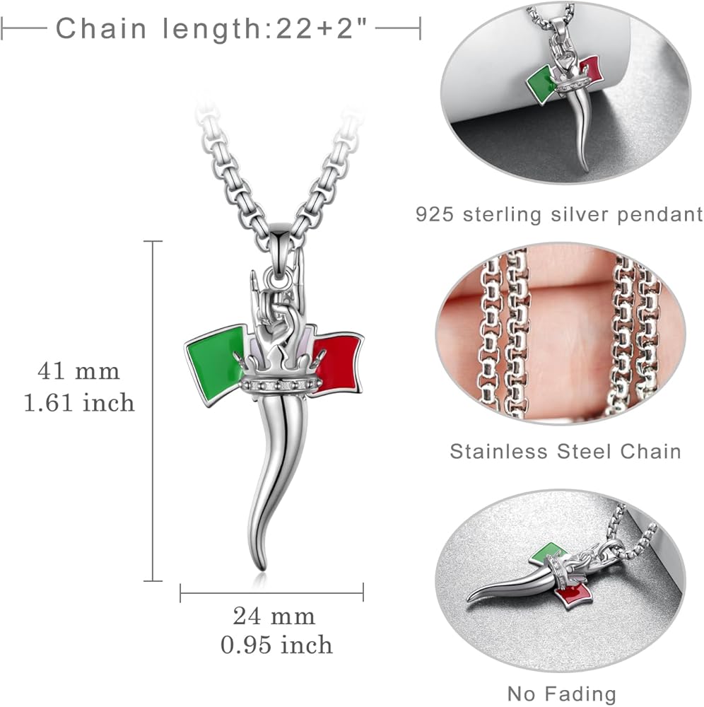 Italian Horn Necklace for Women Material: The Italian horn necklace is made of sterling silver, anti-tarnish, hypoallergenic, nickel-free, lead-free, cadmium-free, free of any allergic elements, comfortable to wear and harmless to sensitive skin.