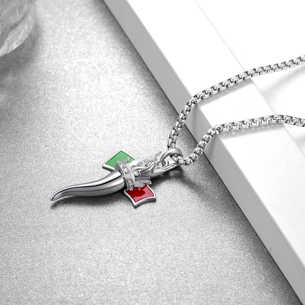 Italian Horn Necklace for Men Size: The size of the Italian horn jewelry is 42*11 mm (1.65*0.43 inch). The Italian horn necklace is lightweight and comfortable to wear all day without any discomfort.