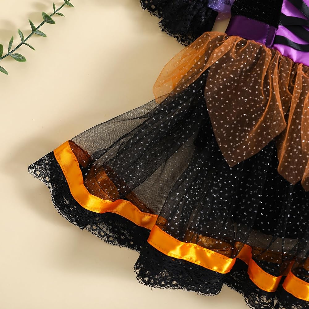 🎃🎃 Materia: Cute baby girl halloween romper dress outfit is made of cotton blend and tulle, skin-friendly and breathable, soft and comfortable fabric cares for baby's skin. Newborn infant baby halloween outfit baby girl witch pumpkin skirts onesis bodysuit.
