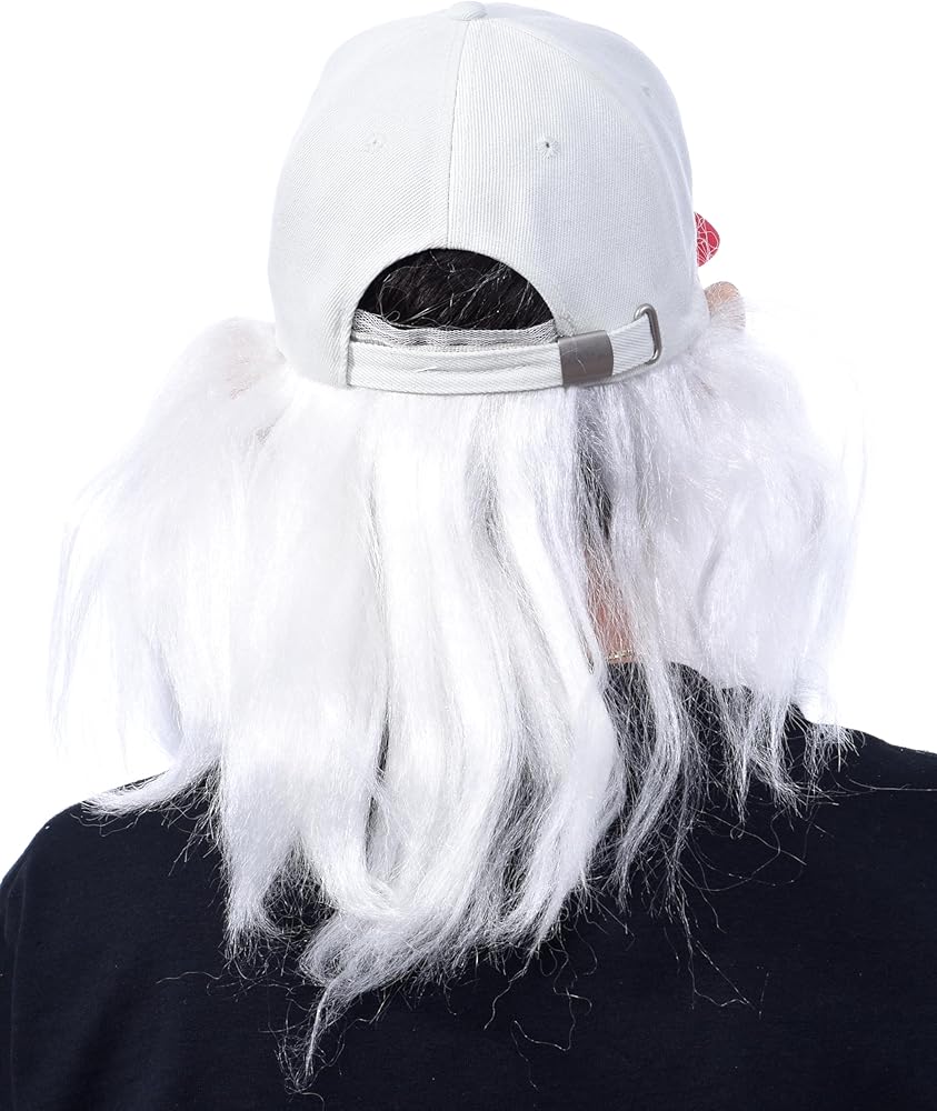 Elderly woman character with attached adjustable size "i love bingo" hat and hair