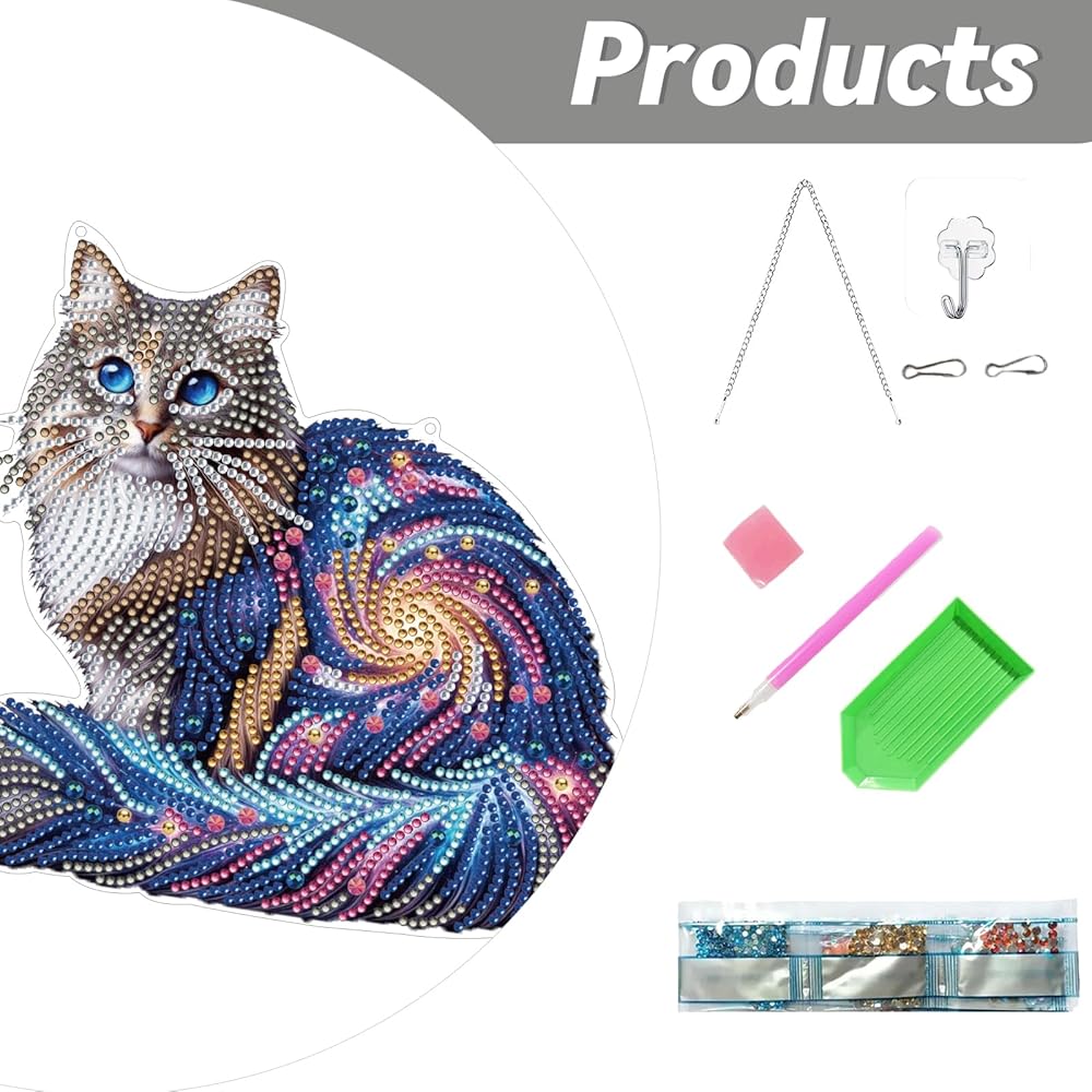 VNRGG DIY Hanging Diamond,Adult Cat Diamond Painting Kit,Special 5D Gem Art suncatchers,Home Wall Decoration Gift,Box Package.