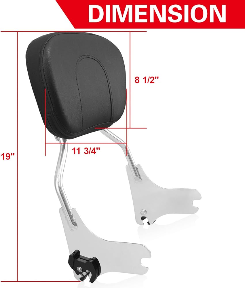 High Quality:Gloss black/Chrome steel detachable Sissy Bar + black soft leather pad. Premium steel sissy bar and latch clips has excellenct strength. Not easy to break, tough and durability enough for long-lasting performance.