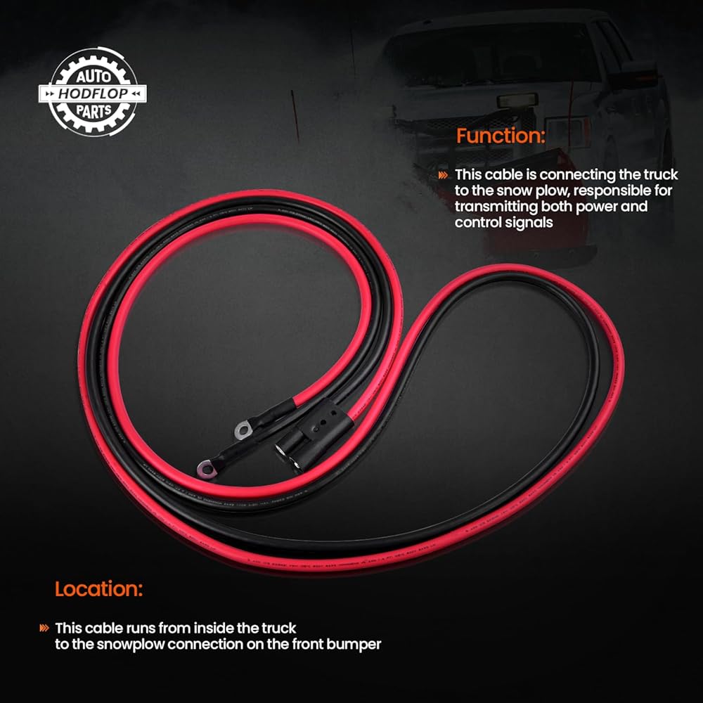 [Directly Fit]: OE Replacement new Snow Plow Power Ground Cable, Easy installation, the snow plow cables are installed on the vehicle side of the snow plow wiring unit. These cables will be mounted to the vehicle battery as well as the snow plow solenoid under the hood, which then comes out the front of the vehicle and plugs into the plow side power cable