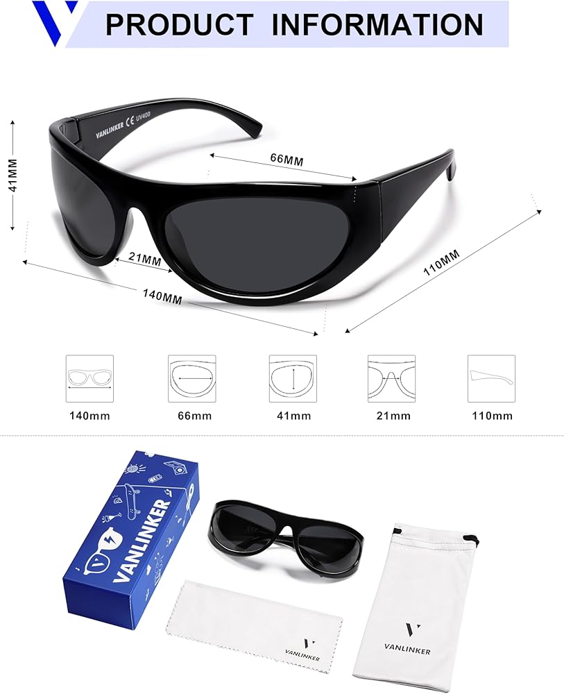 🔥【VINTAGE COOL WRAPAROUND DESIGN】Inspired by millennial street culture, our chic wraparound sunglasses are this season's slickest new sustainable look. Designed with sporty, sleek proportions and flat brow bar, this unisex style offers a fit snugly to the face. The refined design exudes confidence, setting you apart from the crowd and making a statement wherever you go.