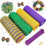 4 Roll Christmas Poly Mesh Ribbon, 10 Inch x 30 Feet Metallic Poly Mesh Ribbon Red Green and White Glitter Foil Decorative Mesh Rolls for DIY Wreath Crafts Party Decoration