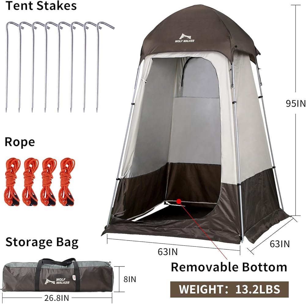 Versatile Design Shower Tent: This portable privacy tent is perfect for a variety of outdoor activities including as an outdoor toilet, shower tent, changing/dressing room, camping/fishing shelter. It is ideal for use in open fields, beaches, woods, travel, gaming, gatherings, and show activities. The enclosed roof design ensures maximum privacy. A Must-Have Travel Accessory For Your Next Adventure!