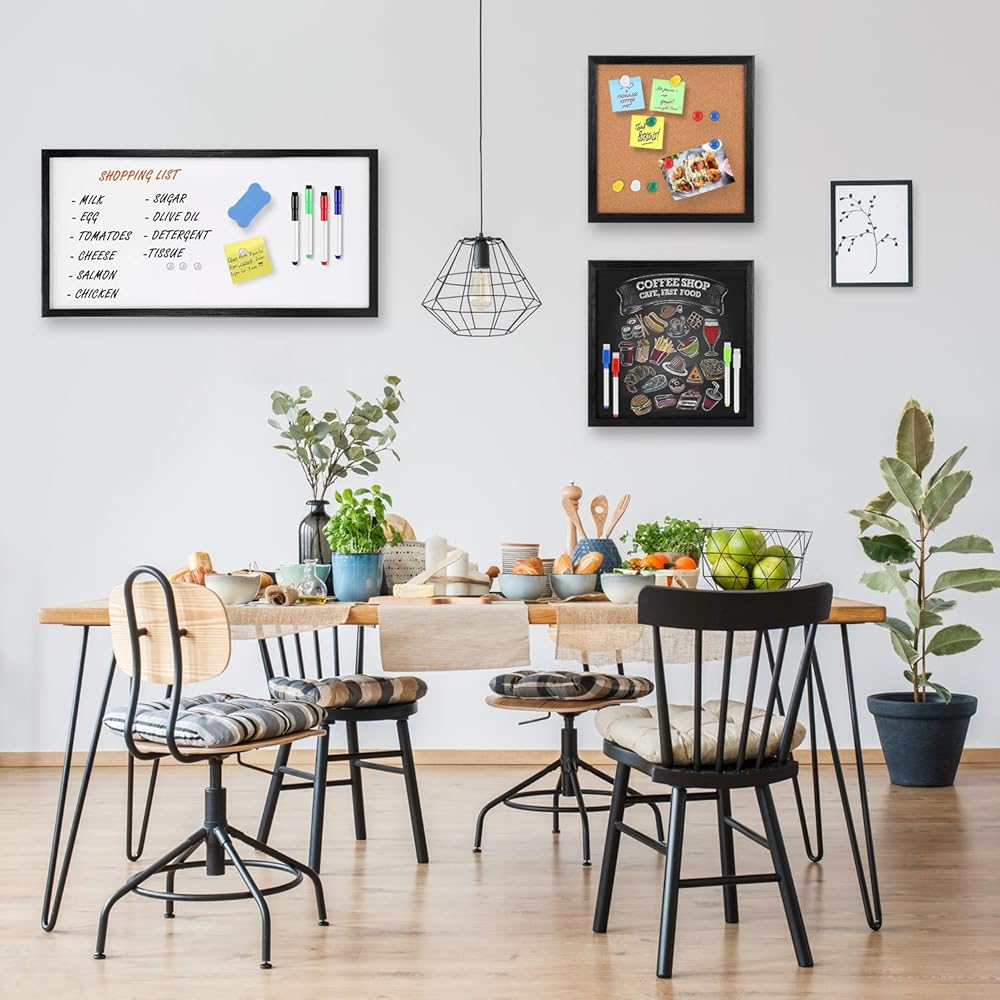QUALITY PRODUCT - The Whiteboard, Cork Board and Blackboard are with REAL NATURAL WOOD Framed, offers smooth writing surface and ensures the highest quality display of any content. The chalkboard is suitable for chalk markers and traditional chalks writing, easy to clean with damp cloth. Whiteboard is easy to clean with the given eraser.