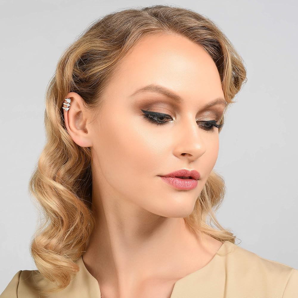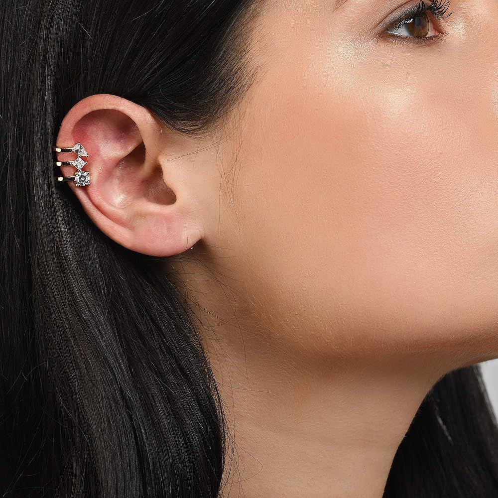Namana Ear Cuff Earrings for Women and Teen Girls, Silver, Gold, or Rose Gold Ear Cuffs for Non-Pierced Ears, Ear Cuffs for Women set with Cubic Zirconia Stones