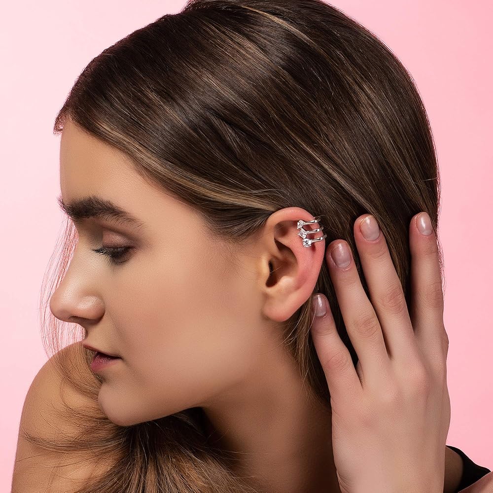 Stunning ear cuffs for women set with AAA cubic zirconia. Silver ear cuffs for non pierced ears