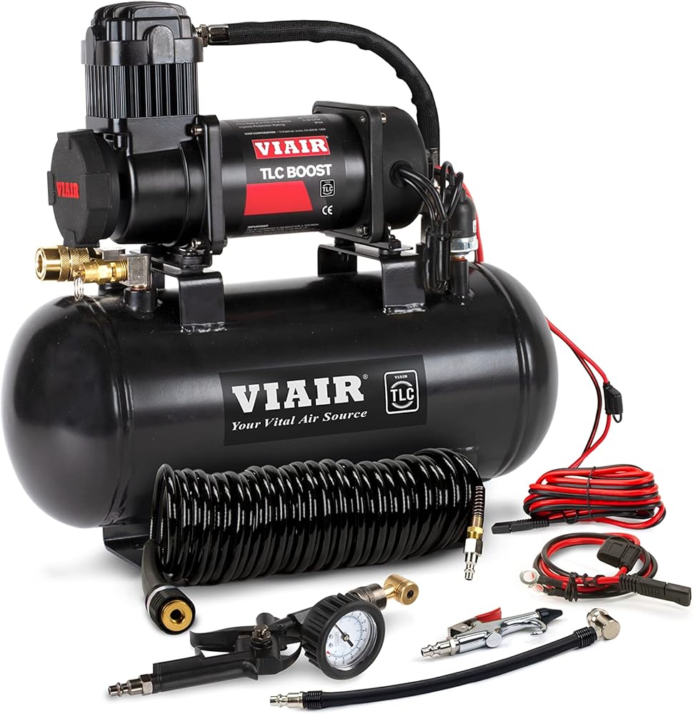 The TLC PLUS is a high-performance compact compressor meant for on-the-go bike and vehicle tire inflation. The kit features a 30ft coil hose and a shop-style inflator with rotating Presta and Schrader attachments. The compressor charges the coil hose to 120PSI, storing enough air to provide a blast for seating tubeless bicycle tires, and it is capable of inflating vehicle tires up to 31”. The TLC PLUS comes in a durable carry bag and can be used as a portable or hard-mounted to the vehicle using the SAE battery clamps or terminal ring attachments included. The compact dimensions make it easy to store in your vehicle, keeping it out of the way and ready whenever you need it.