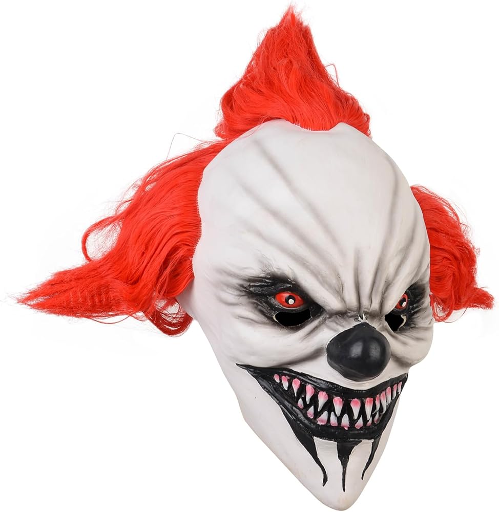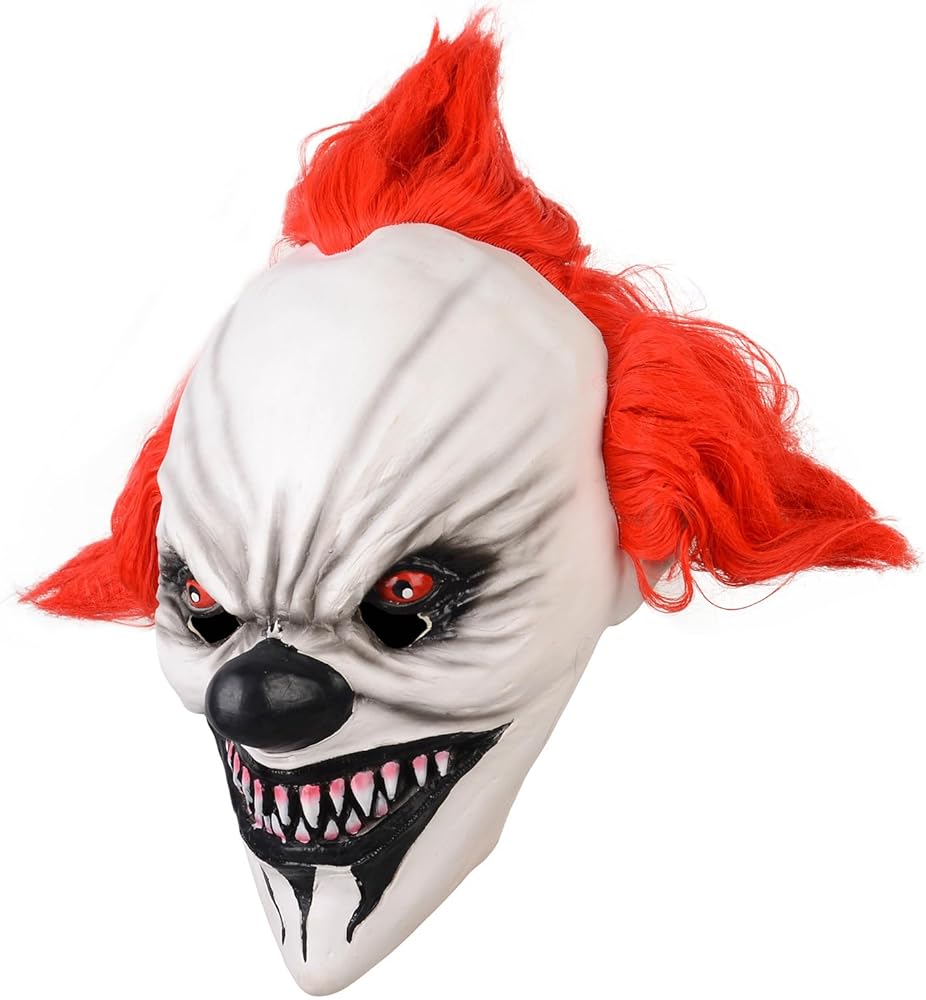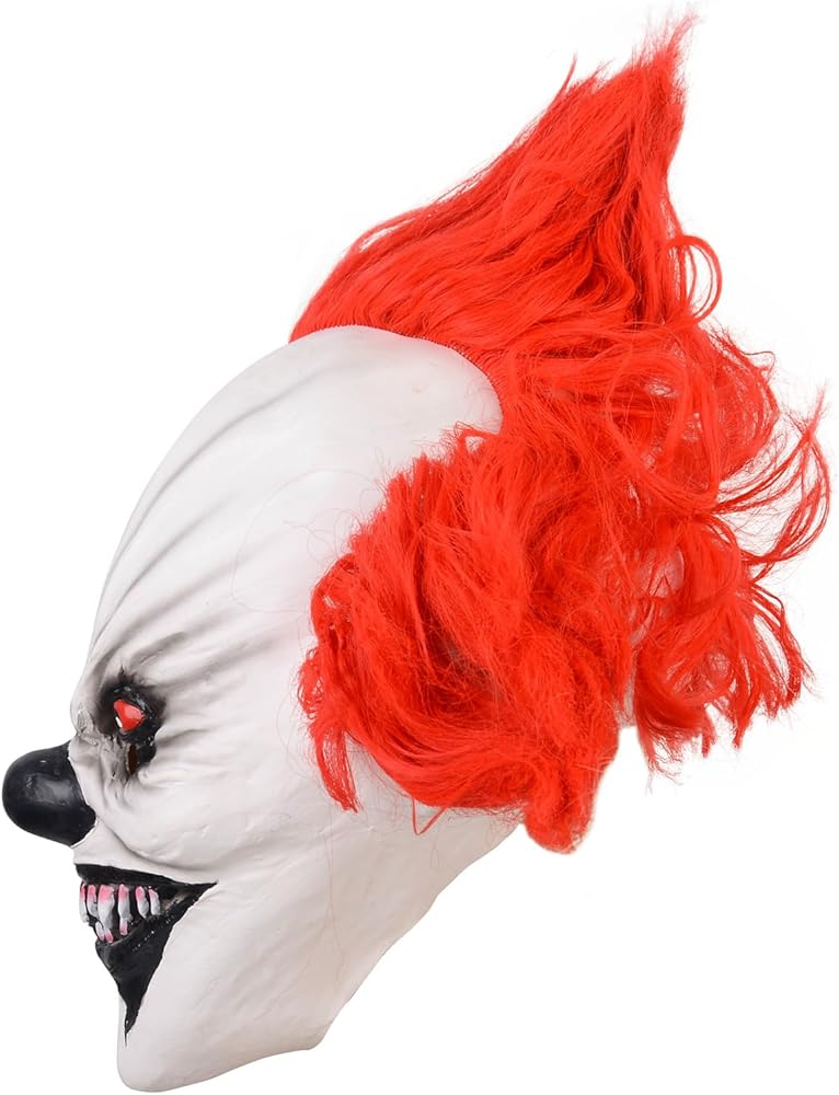 【Unique Design】This Halloween clown mask comes with a pair of red eyes like a demon, full of blood, and a black mouth that is a bit like a vampire, causing fear and terror to those around you. Red hair can be tied into a variety of styles according to their preferences.