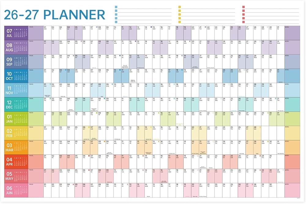 2026-2027 Yearly Wall Calendar - Calendar 2026-2027, Wall Calendar 12 Month, July 2026 - June 2027, 23.1"X 34.6" (Open), Full Year Calendar One Page, Annual Year Calendar with Stickers, Holidays