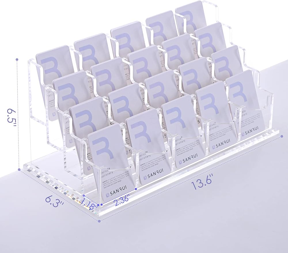 Organize and Store All Kinds of Cards:This acrylic business card holder is a convenient and practical multi-compartment card organizer that helps users sort, categorize and store various types of business cards or game cards.