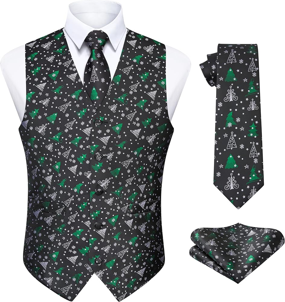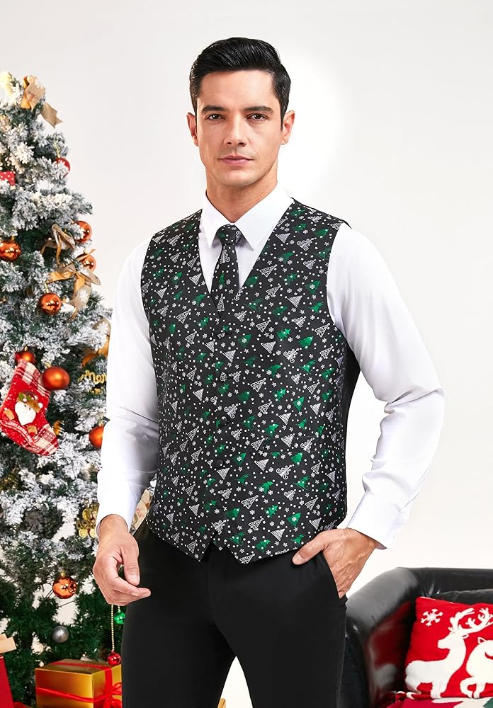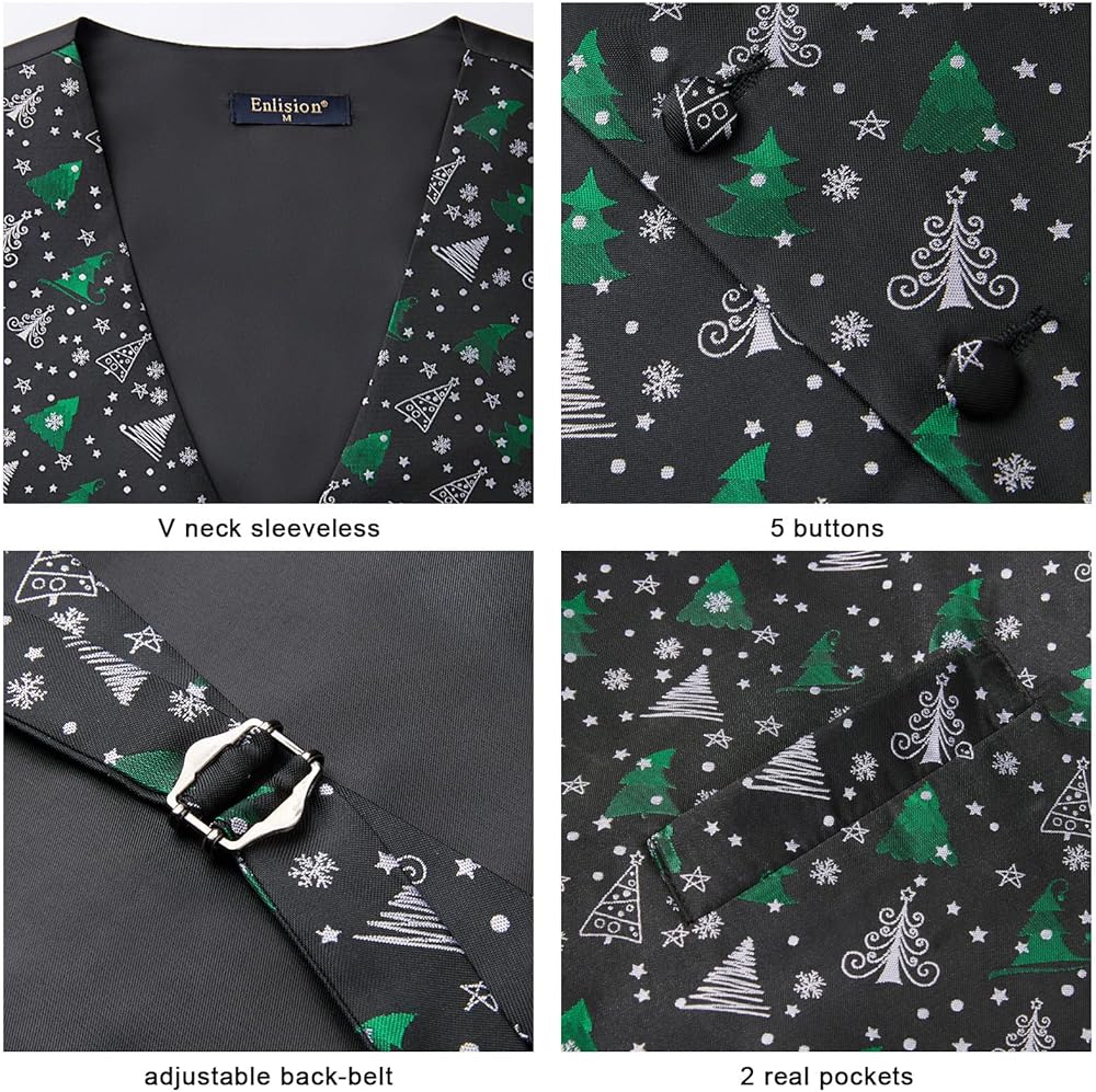 Xmas Waistcoat : The material of vest is soft and lightweight. No fading, No distortion, Anti-wrinkle. Giving you unique texture and comfortable wearing experience. Whether it's a festive day in the office or family celebrations, this necktie with suit vest are sure to spread some festive cheer