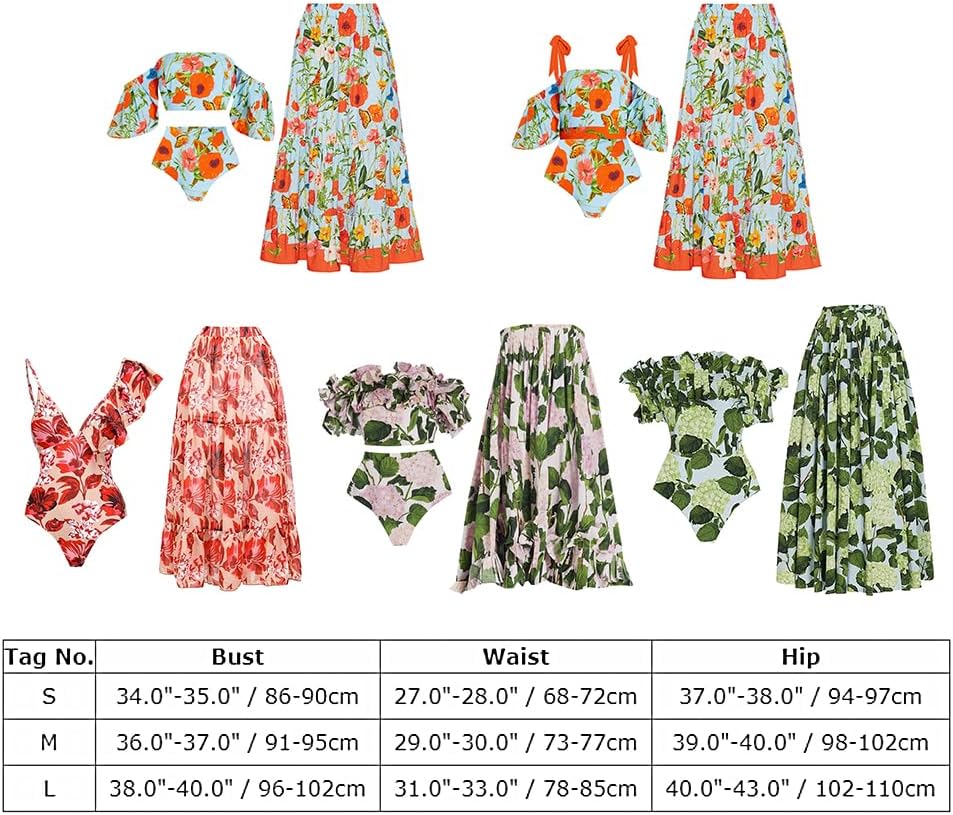 Chic Design: The bikini set design with solid, floral or leaf print, adds a touch of romantic summer vibe, makes you cute and sexy. Womens swimsuit with wrap skirt great for your summer holiday; Each sarong swimsuit helps you enjoy the sunshine on the beach.