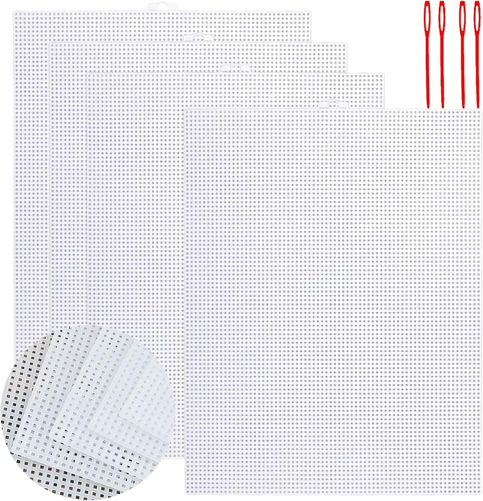 Chwang 4 Pieces 7 Count Plastic Mesh Canvas Sheets with 4 pieces weaving needles perfect for DIY handmade porject.