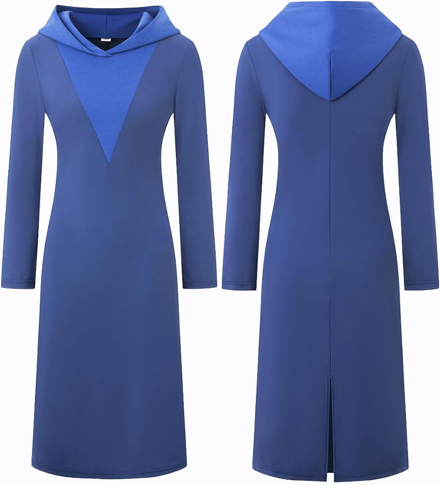 【Relaxed Casual Style】The sporty maxi Length and hood give it a relaxed, casual vibe, perfect for everyday wear, making it a go-to piece for creating effortless yet chic looks.The Soft Cozy Slim Long Dress works best with Good Ton of Stretch / Perfect Maxi Length / Hood / Hem Back Split / Easy to dress up or down / Long Sleeve.