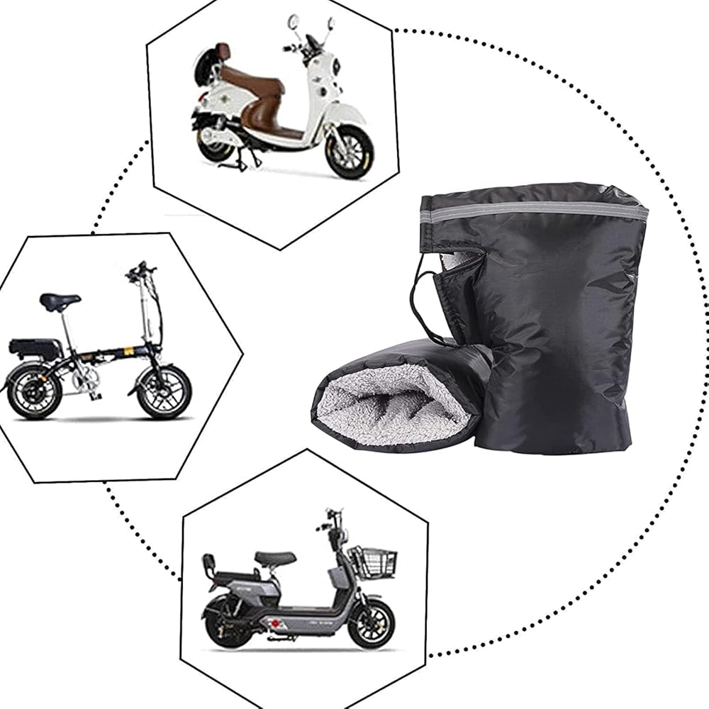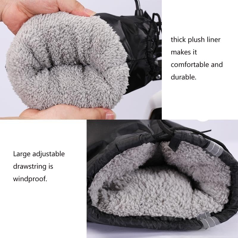 Motorcycle hand mitts is made of waterproof durable PVC, With thickened warm cotton fabric inside, large highlight reflective strips protect your safe riding at night
