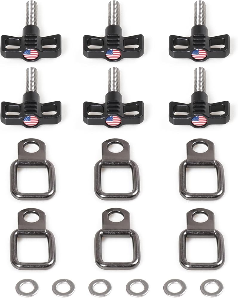 BESTAOO 6Pack Hardtop Quick Removal Bolts Thumb Screws with 6 Tie Down Anchors Compatible with Jeep Wrangler 1997-2025 TJ JK JL Gladiator JT 4XE 2021+ Ford Bronco 2 4 Door Accessories (Flag)
