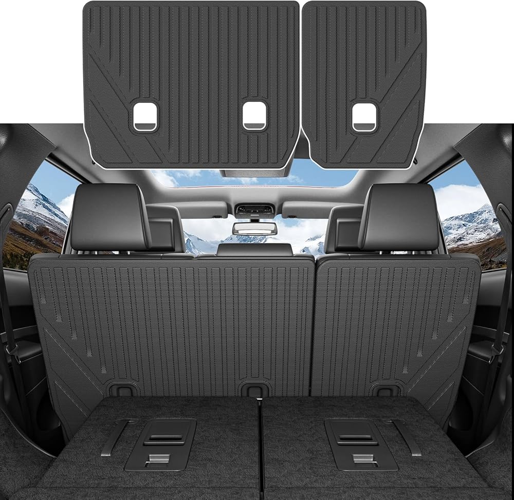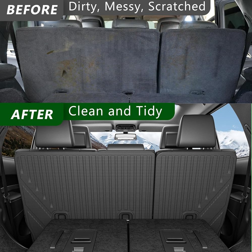 Premium TPE Material:Our 3rd row seat back protector,cargo liner and 6 seats floor mats are made of quality TPE material which has good flexibility.The TPE material provides a soft-touch feel and maintains wear-resistant and tear-resistant.Please rest assured to use it because it has no bad smell and you could use it for a long time.