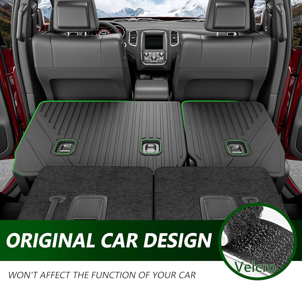 Custom Fitment:The floor mats and cargo mat and 3rd row backrest mat with rice grain are designed according to the original car model.They are compatible with 2016 2017 2018 2019 2020 2021 2022 2023 2024 Dodge Durango 6 seats.Please check the vehicle model thoroughly before making a purchase.