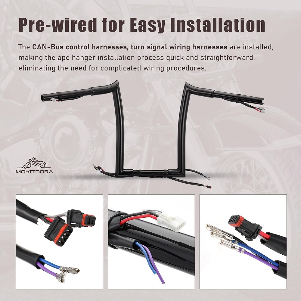 Pre-wired - The CAN-Bus control harnesses, turn signal wiring harnesses are installed, making the Street Bob ape hanger installation process quick and straightforward, eliminating the need for complicated wiring procedures