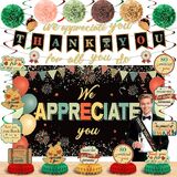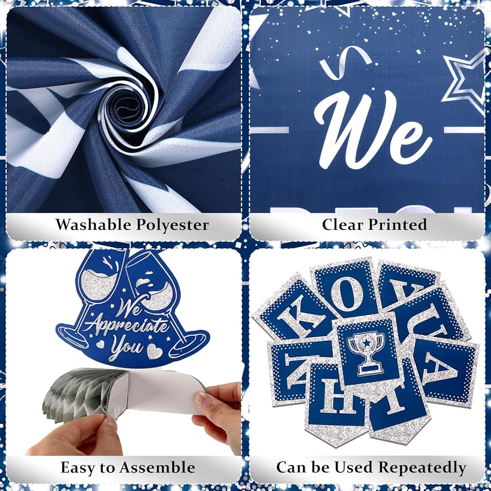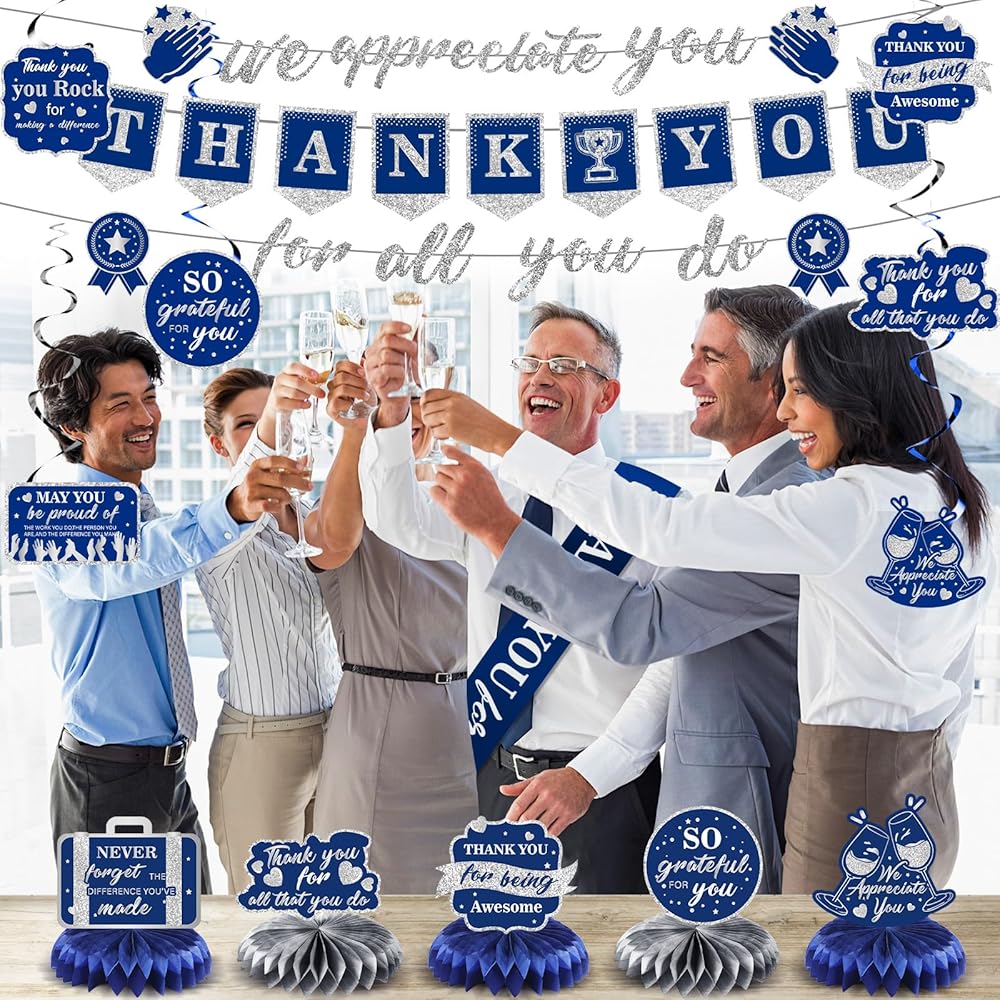 Versatile and Flexible:While these blue gold we appreciate you decoration sets for men and women are ideal for employee and teacher appreciation parties, the thank you decoration set is versatile enough to use in most celebratory events where appreciation is warranted, fit for company gatherings, school events, family parties. Elevate your gratitude with our thank you decoration set