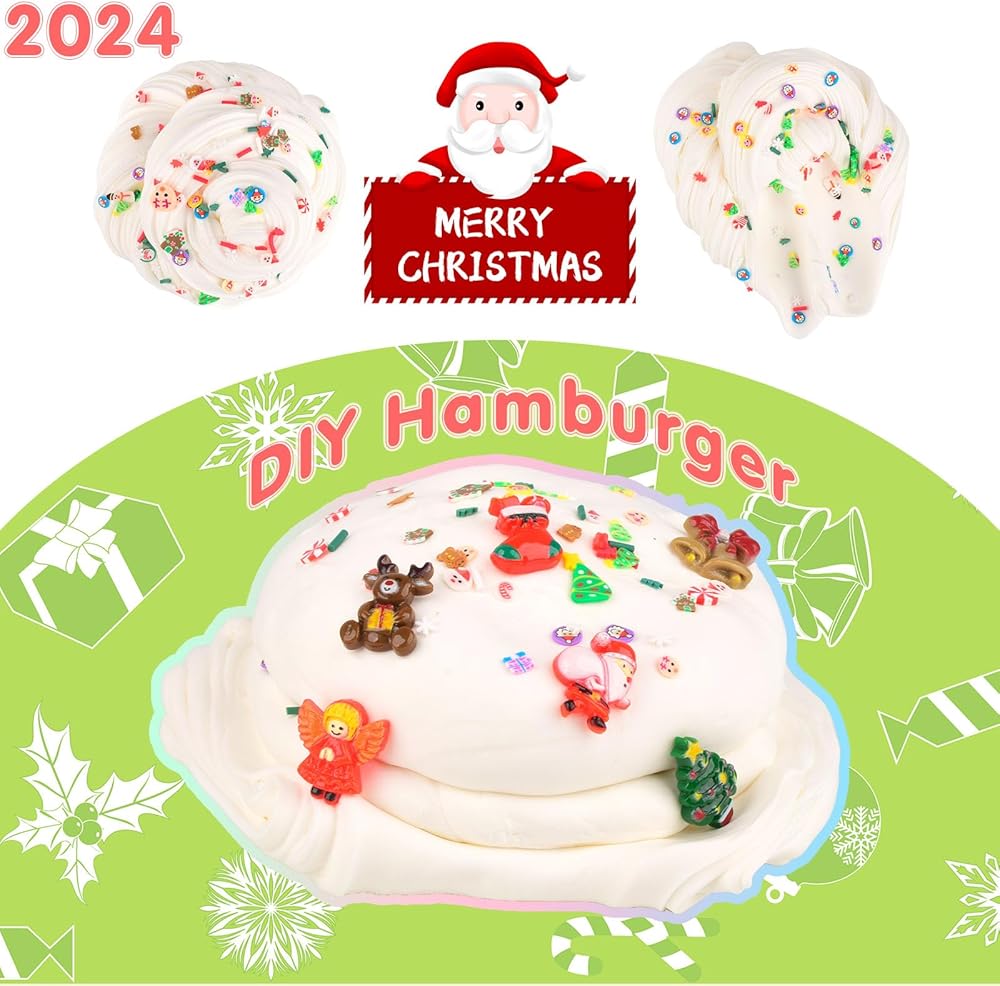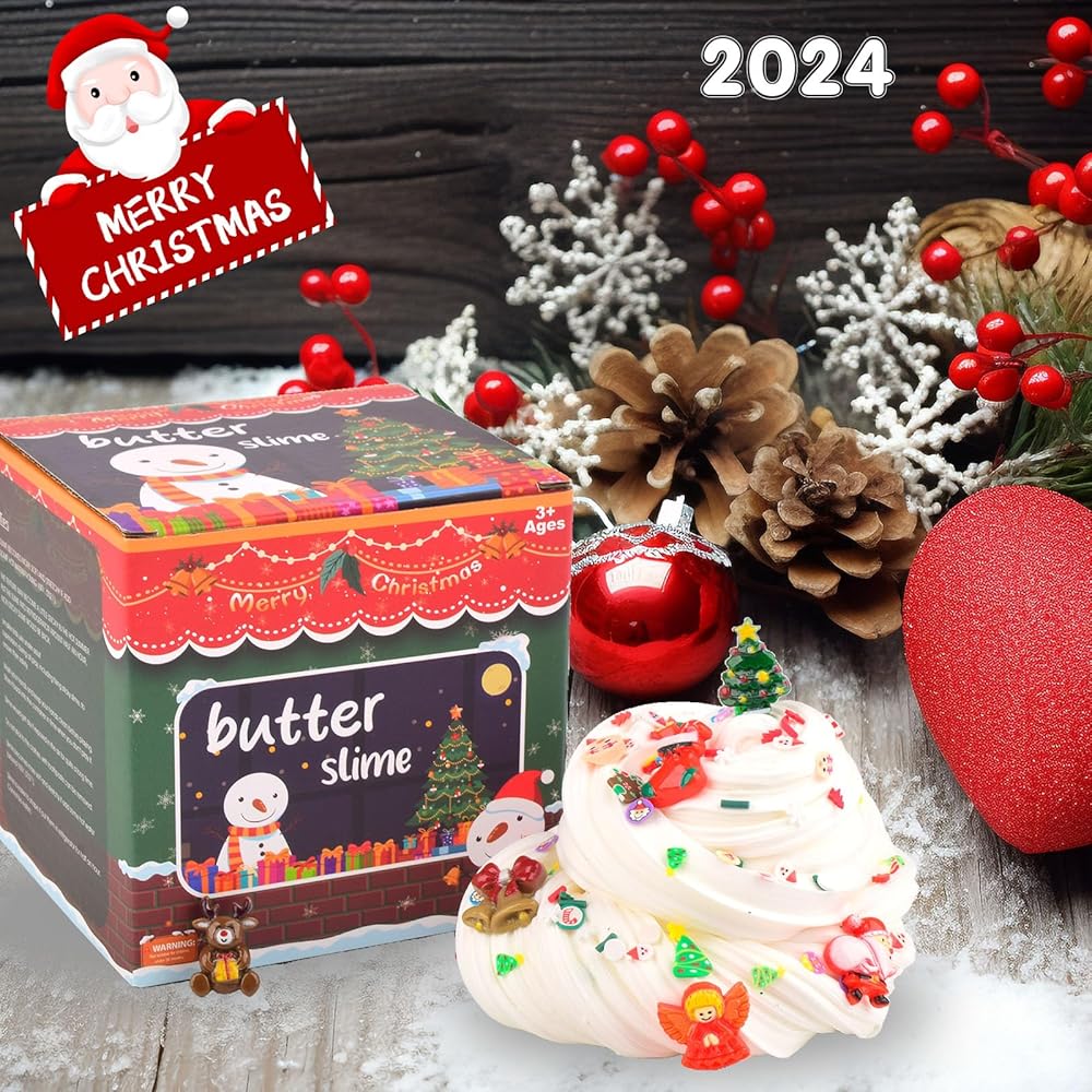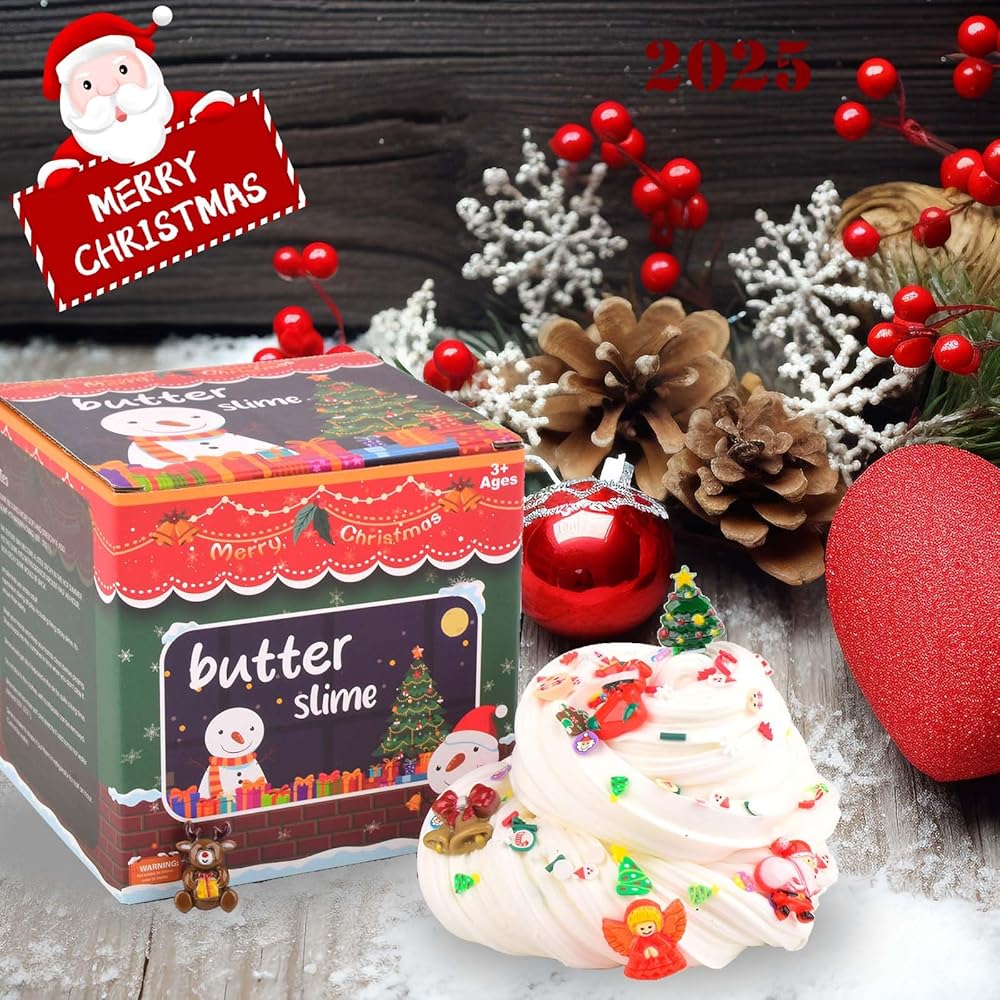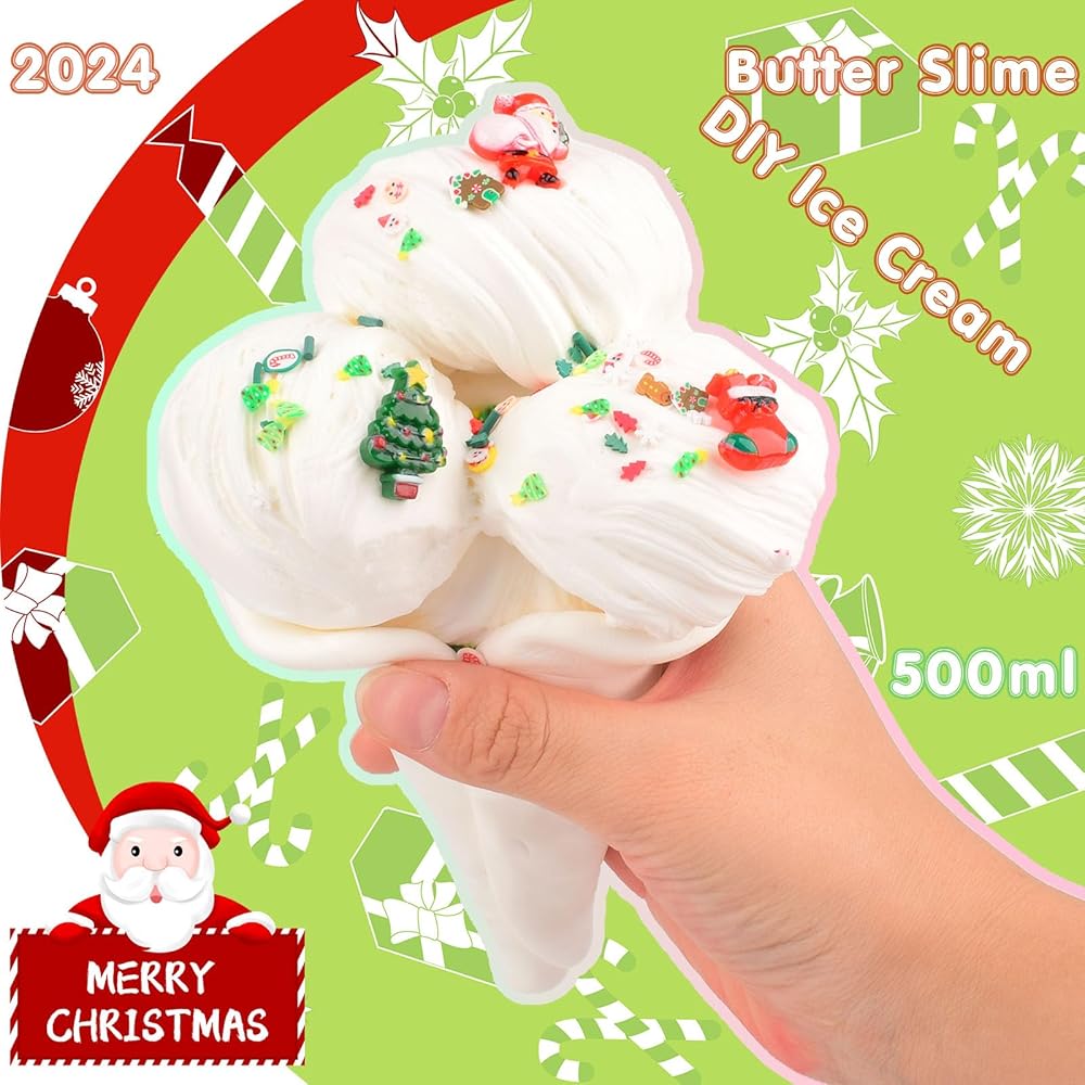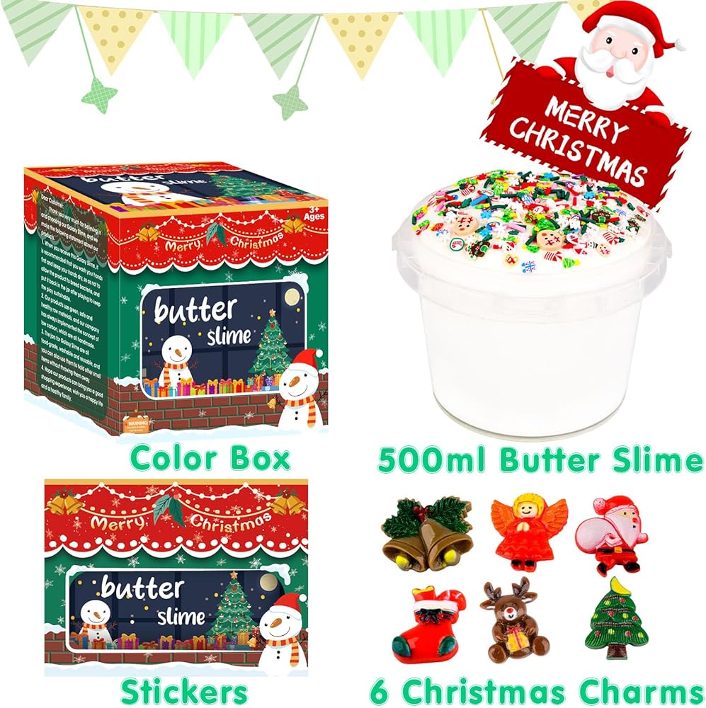 Christmas Prefabricated 500ml White Butter Clay Bucket, for Boys and Girls Aged 4-6 and 7-12, Slime Decompression Toy, DIY Butter Puree That can be Played with Multiple People