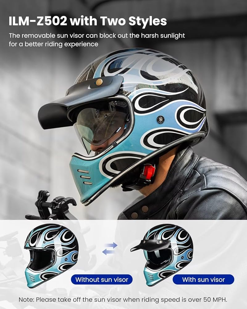 Retractable Inner Visor--3 snaps for you to slightly adjust the position of the inner lens. The full face motorcycle helmet comes with dark black inner visor, clear and silver inner visor are optional for extra purchase.